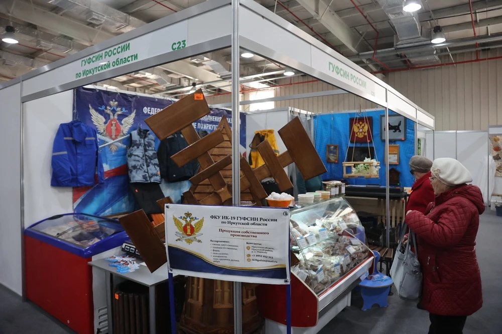 ГУФСИН России по Иркутской области на выставке представило широкий ассортимент мясной и колбасной продукции, выпечки и консервированных продуктов, а также предметов интерьера для загородного дома, садовой мебели, швейных и сувенирных изделий, выпускаемых производственными площадками исправительных учреждений.
