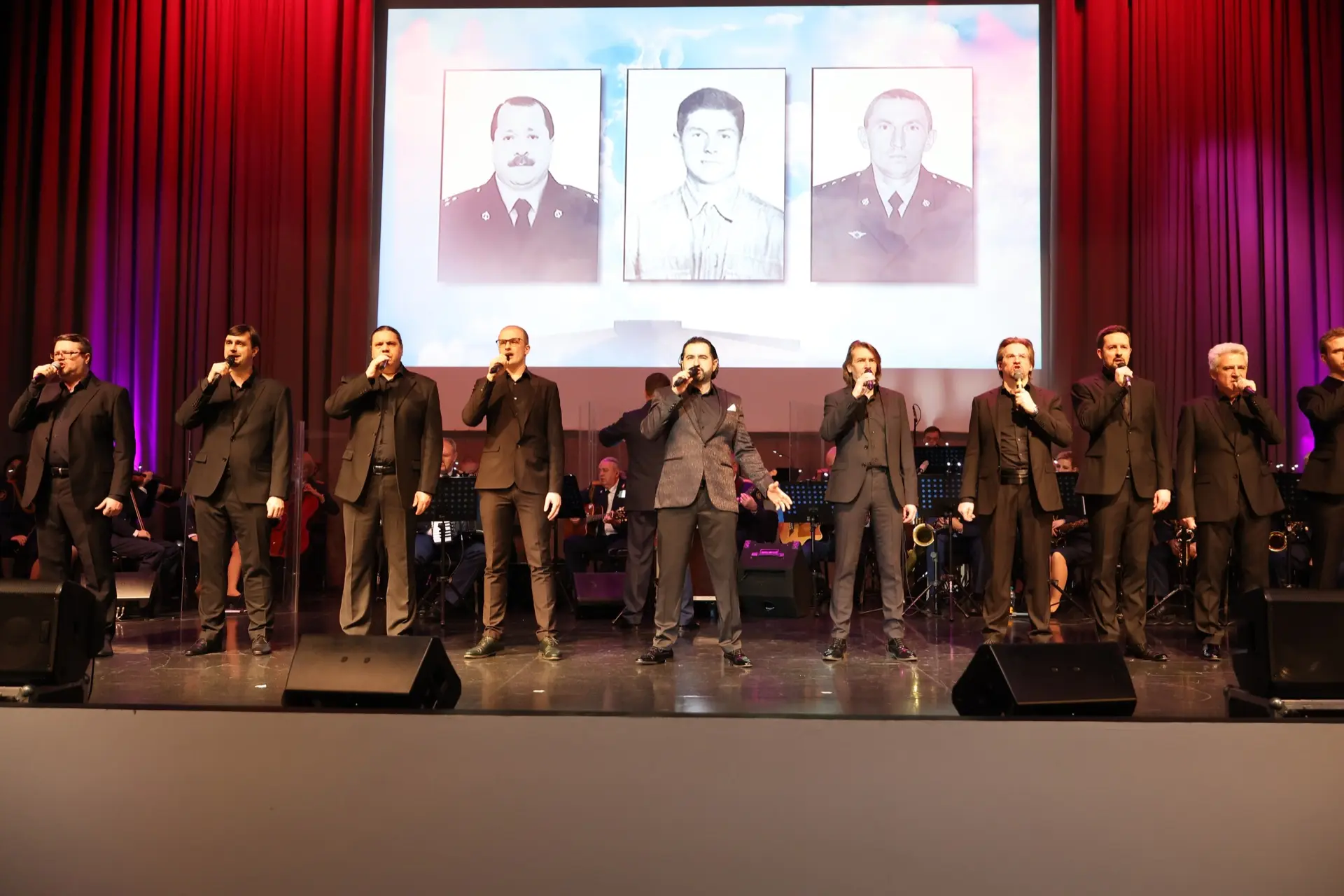 Пронзительную песню «Жди меня домой» исполнил солист Центрального оркестра ФСИН России Эдвард Хачарян в память о погибших сотрудниках уголовно-исполнительной системы, после чего зрительный зал почтил память героев минутой молчания.