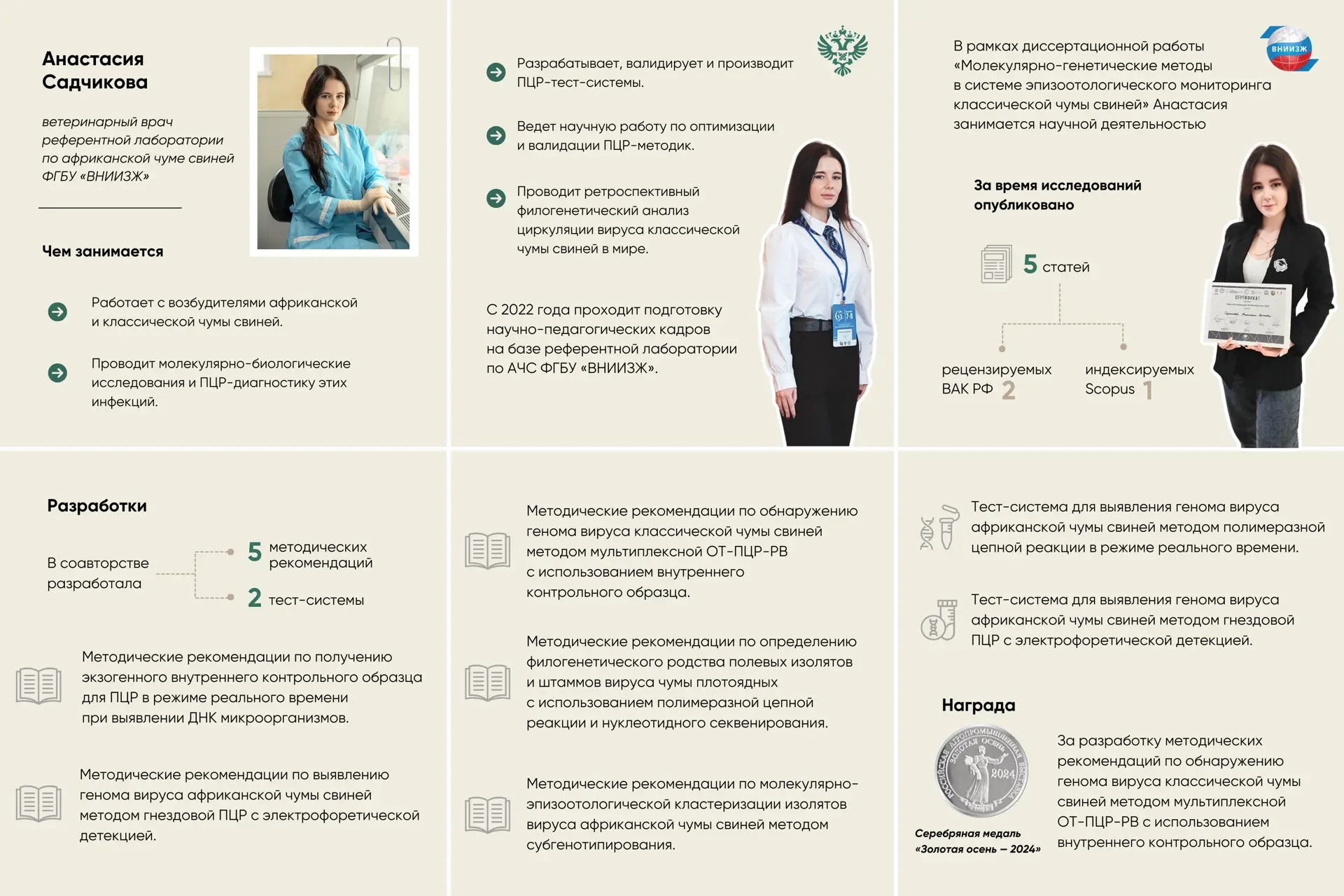 🔬Ее профессионализм, научный подход и вклад в совершенствование диагностических методик помогают укреплять эпизоотологическую безопасность и развивать современные технологии ветконтроля.