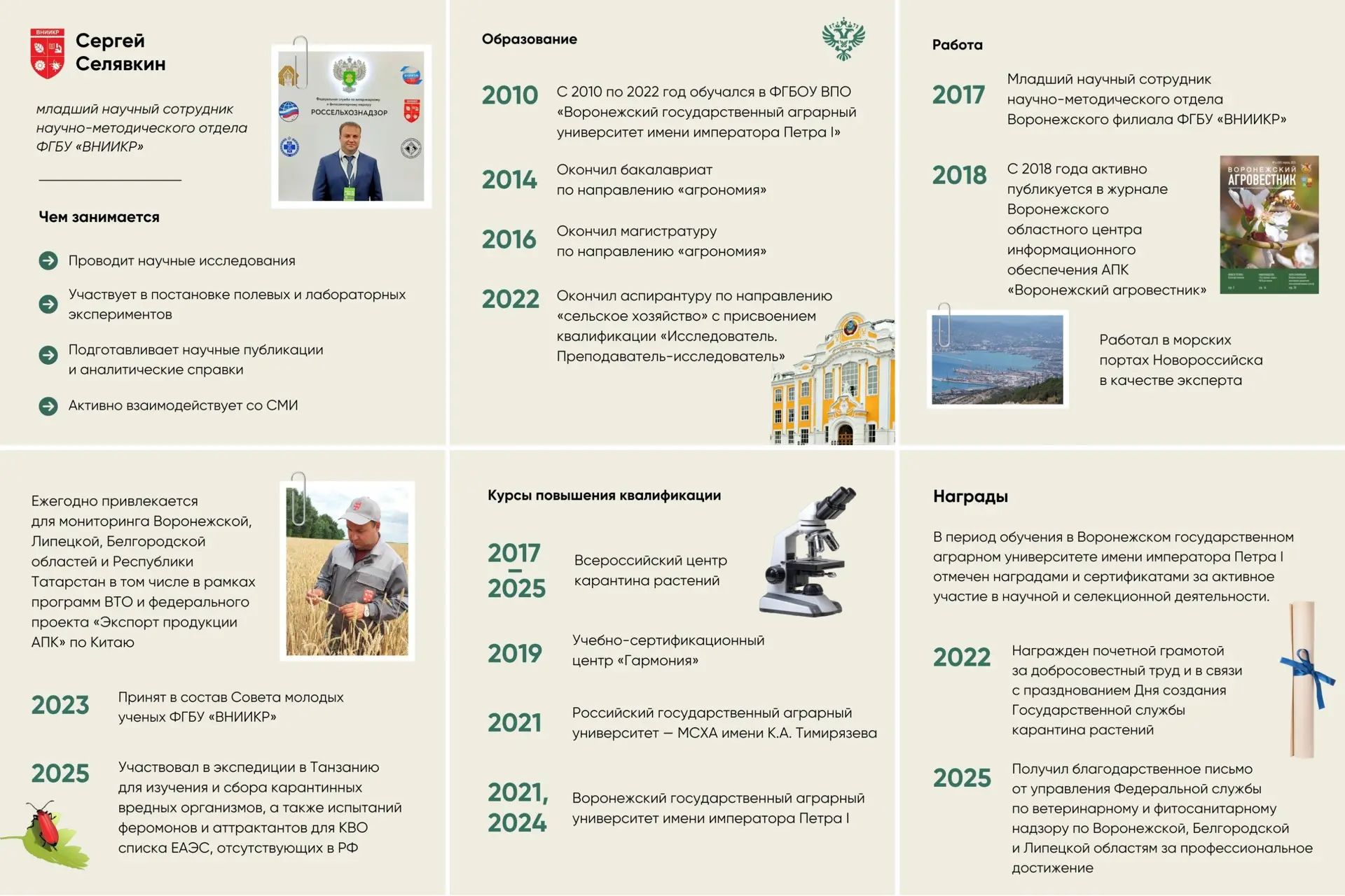 Сегодня рассказываем о Сергее Селявкине — младшем научном сотруднике Воронежского филиала ФГБУ «ВНИИКР».