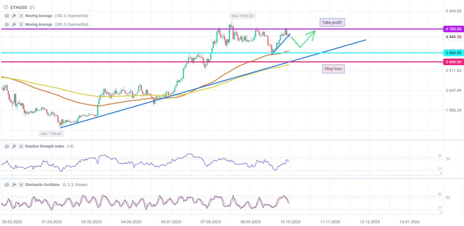 Покупка 🔼 ETHUSD в диапазоне 3900-4200.