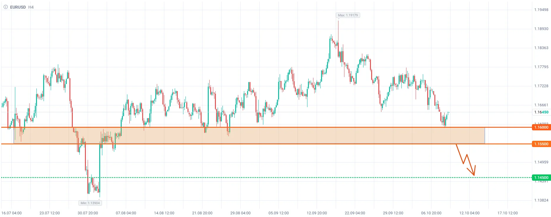 ➡️ Валютная пара EURUSD продолжает двигаться в узком диапазоне 1,1600-1,1800. Отчасти это объясняется тем, что публикация отчета по рынку труда США была отложена из-за приостановки работы правительства. Выход отчета по рынку труда США запланирован на эту пятницу, после того как он был отложен на прошлой неделе. Однако из-за продолжающихся переговоров по бюджету, вероятно, данные могут быть отложены снова.