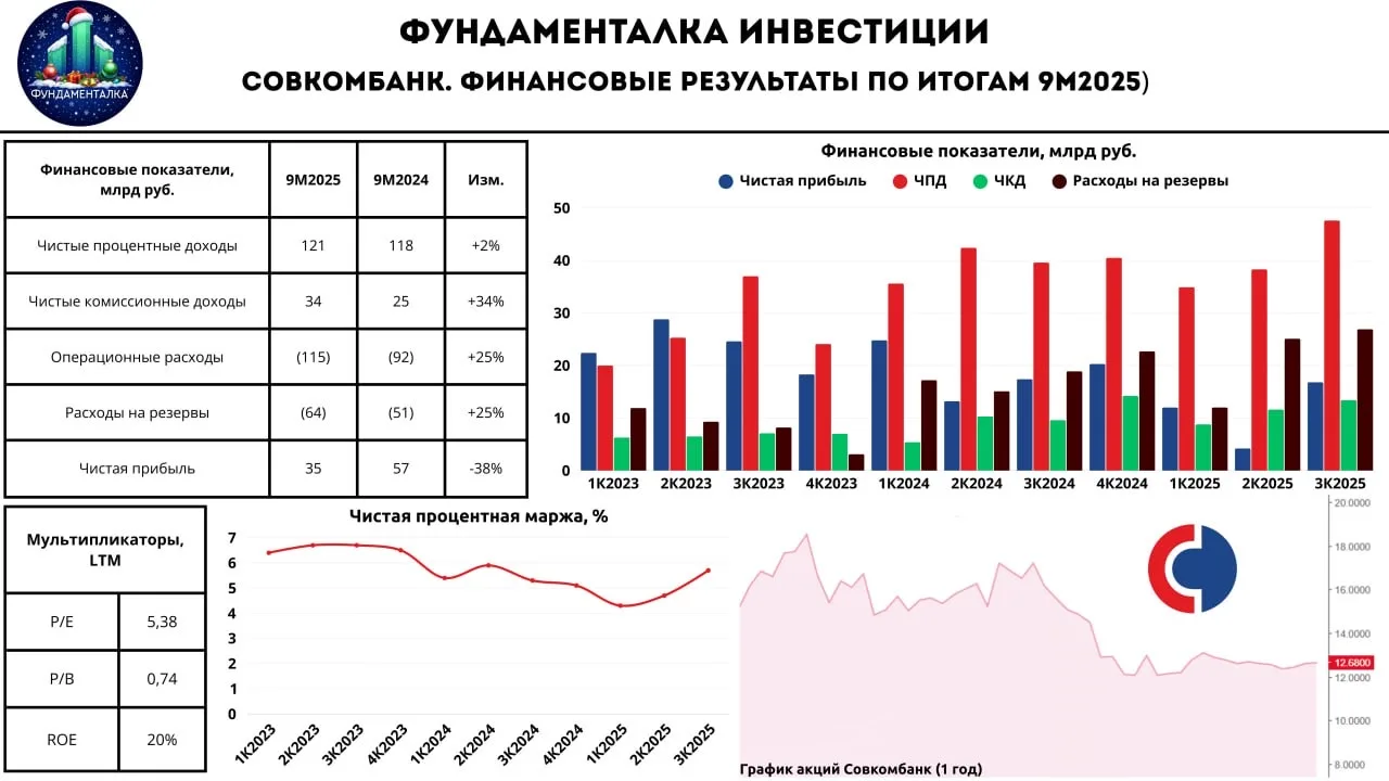 📉 В то же время остальные ключевые показатели продолжили находится под давлением ряда факторов (расходы на резервы, операционные расходы, снижение ключевой ставки). В результате чистые процентные доходы сократились на 11,7% г/г - до 5,8 млрд руб., а чистая прибыль вовсе упала на 29,4% г/г - до 3,6 млрд руб.