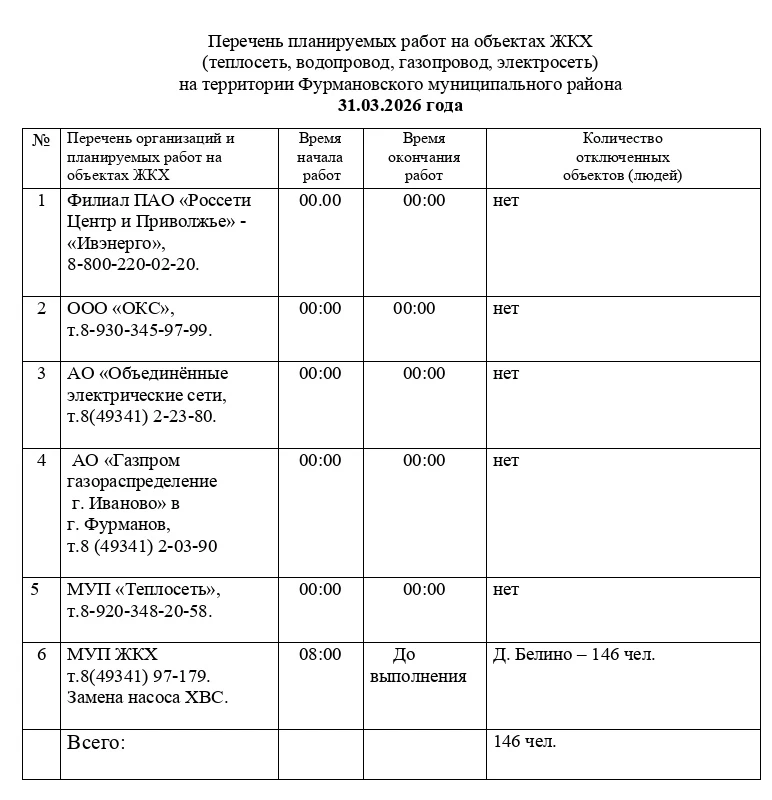 Перечень планируемых работ на объектах ЖКХ