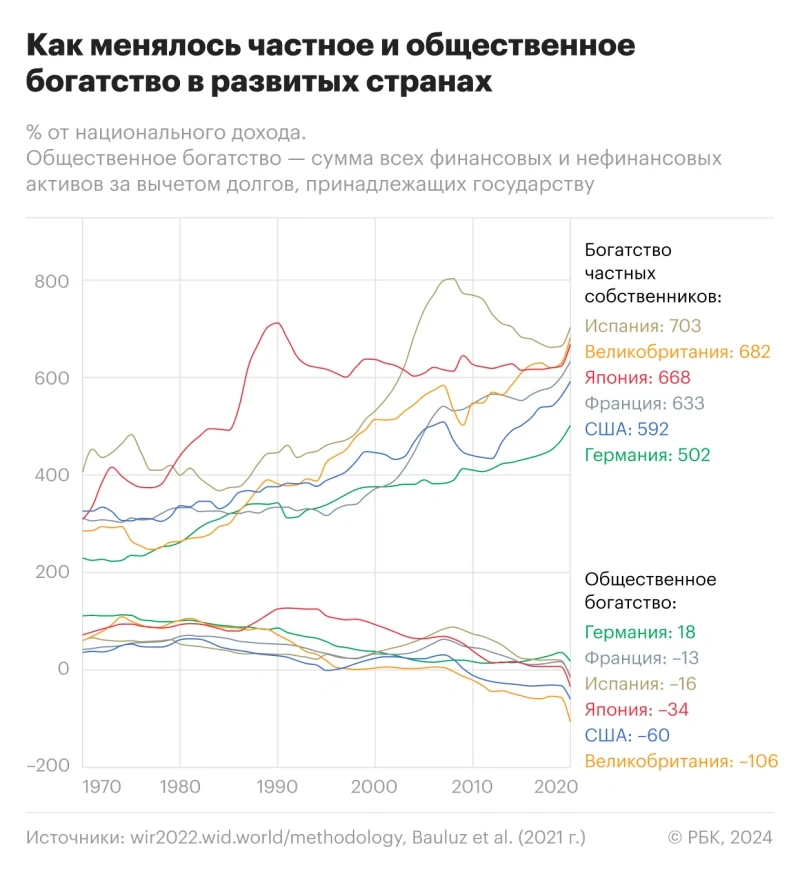 Несмотря на финансовые кризисы конца 1990-х и 2008 года, частный капитал значительно вырос: в период с 1970 по 2018 год в самых богатых странах мира этот показатель увеличился в два раза. «Тенденция к росту неравенства в доходах и богатстве наблюдалась почти повсеместно с 1980-х годов, особенно в странах, где осуществлялись программы дерегулирования и либерализации национальных экономик», — пишет исследователь Владислав Антропов.