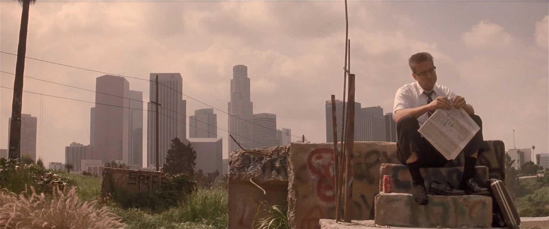 Главный герой фильма "С меня хватит" - пятидесятилетний Уильям Фостер как раз из числа пострадавших технических интеллигентов. При этом Фостер не просто инженер-ракетчик, он еще нерд-беженец из 50-х. Посмотрите, как он одевается: короткая стрижка в стиле space race, толстые очки, черный галстук, белая рубашка и брюки на пуговицах. Его работа символизирует другую эпоху - время разработки ракет, защищавших Америку от коммунистов. В те «золотые» времена, о которых мечтает Фостер все было немного проще: мужчина ходил на работу, женщина оставалась дома и заботилась о детях. После окончания холодной войны мир изменился и вступил в эпоху политкорректных 90-х, Фостер оказался выброшен из времени. Его навыки устарели. Все, над чем он работал и во что верил, общество захотело забыть. Герой оказался в замешательстве. Он растерян и напуган масштабом свершившихся изменений и этот страх, страх лишнего человека непрестанно подпитывает его гнев, который распространяется по тонущему в мареве городу.