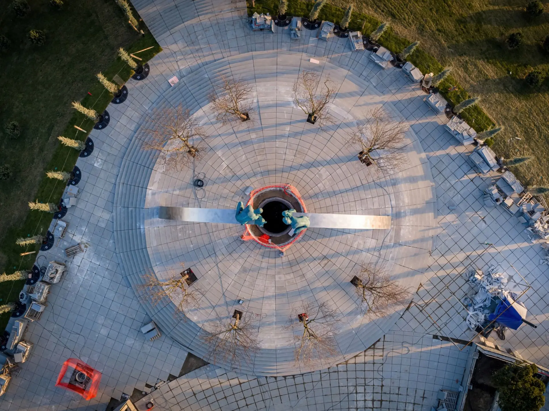 Со стадиона ФК «Краснодар» снимают новогоднюю иллюминацию.
