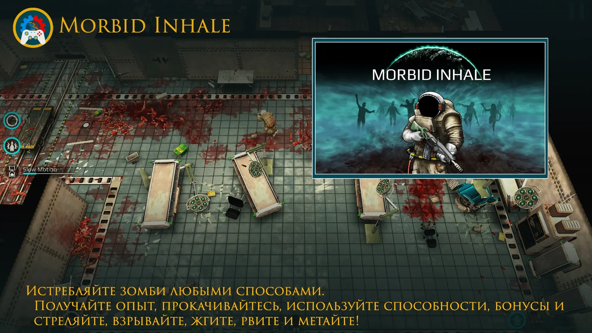 ● Morbid Inhale - драйвовый шутер с видом сверху. Голодные зомби хотят добраться до Вас, возьмите самую большую пушку и дайте им отпор!