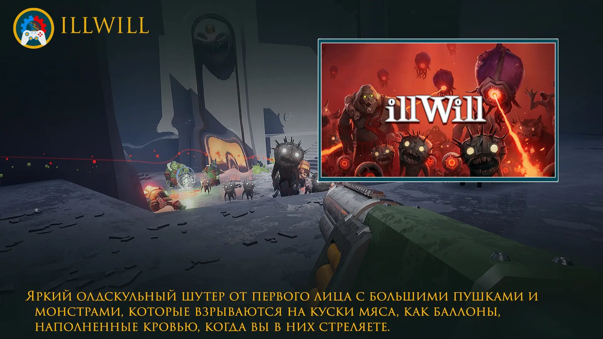 ● ILLWILL - черпает вдохновение из DOOM, Quake, Blood и Serious Sam и представляет собой очень стильный и комедийно жестокий олдскульный бумер-шутер.