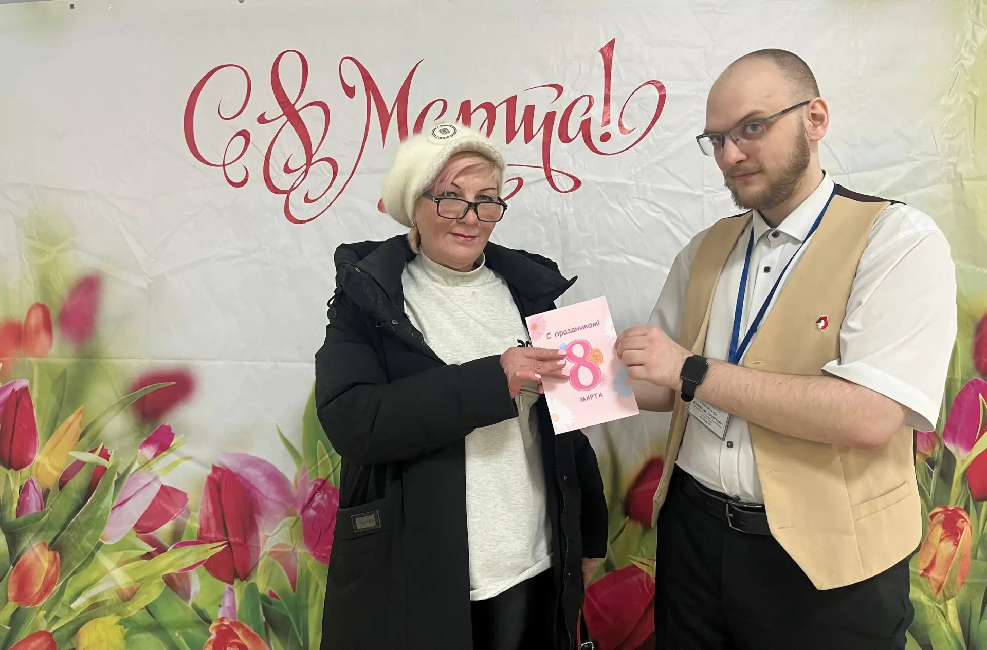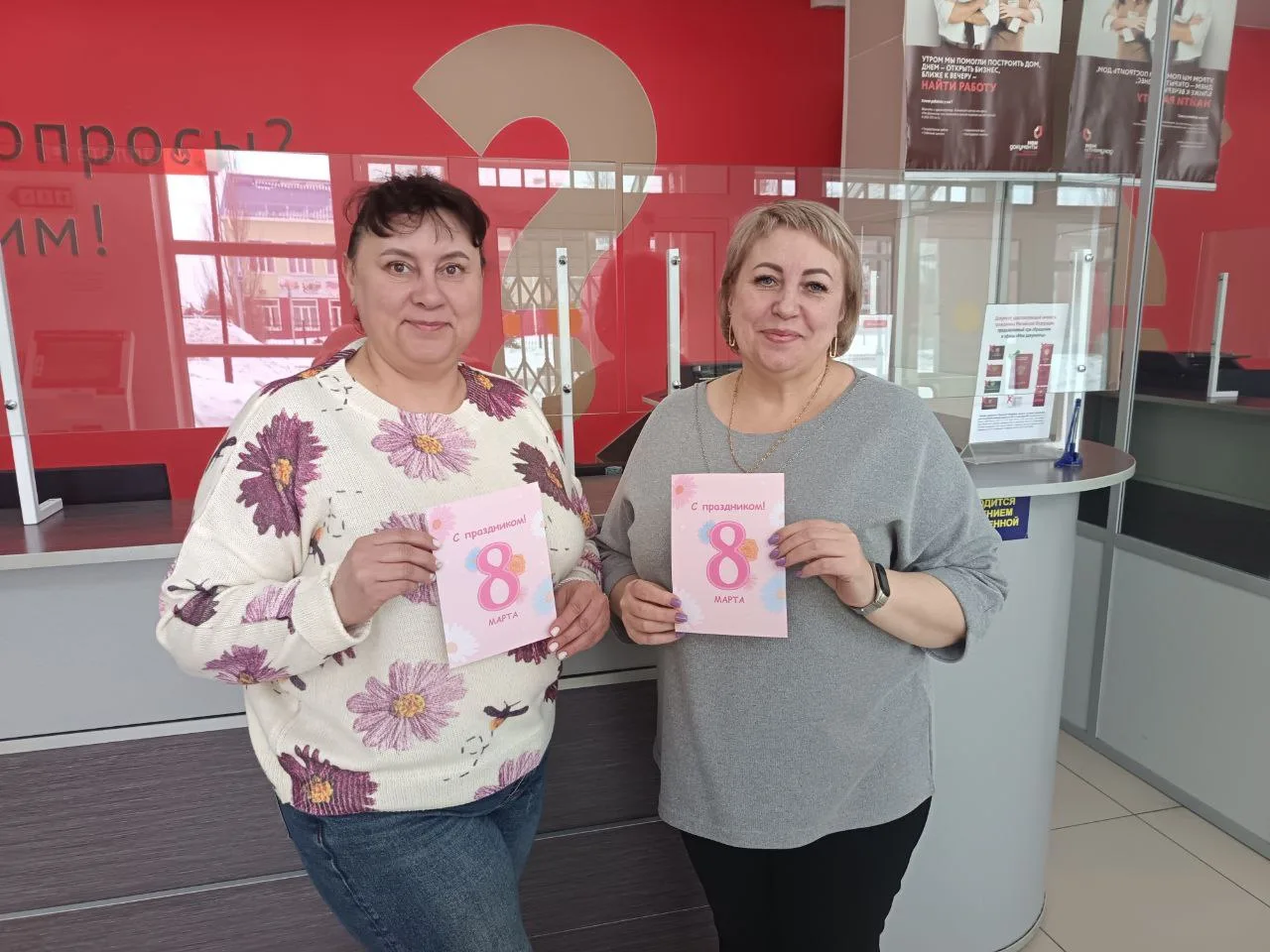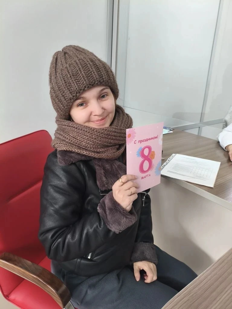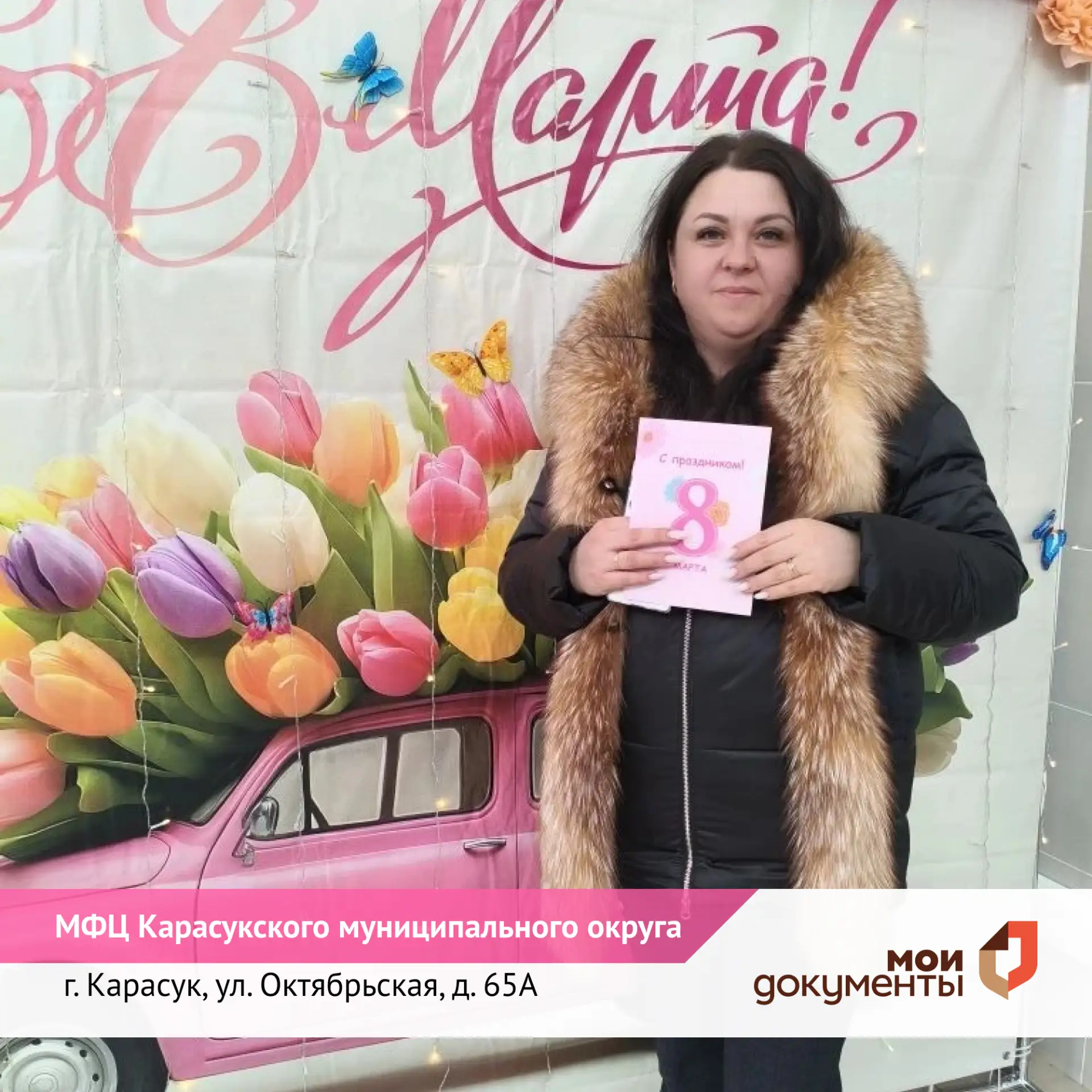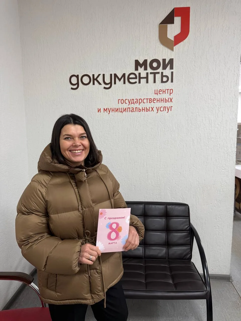 🤗 В преддверии Международного женского дня сотрудники МФЦ Новосибирской области поздравляют заявительниц с наступающим праздником. В ряде филиалов посетительницам вручают праздничные открытки с теплыми пожеланиями.