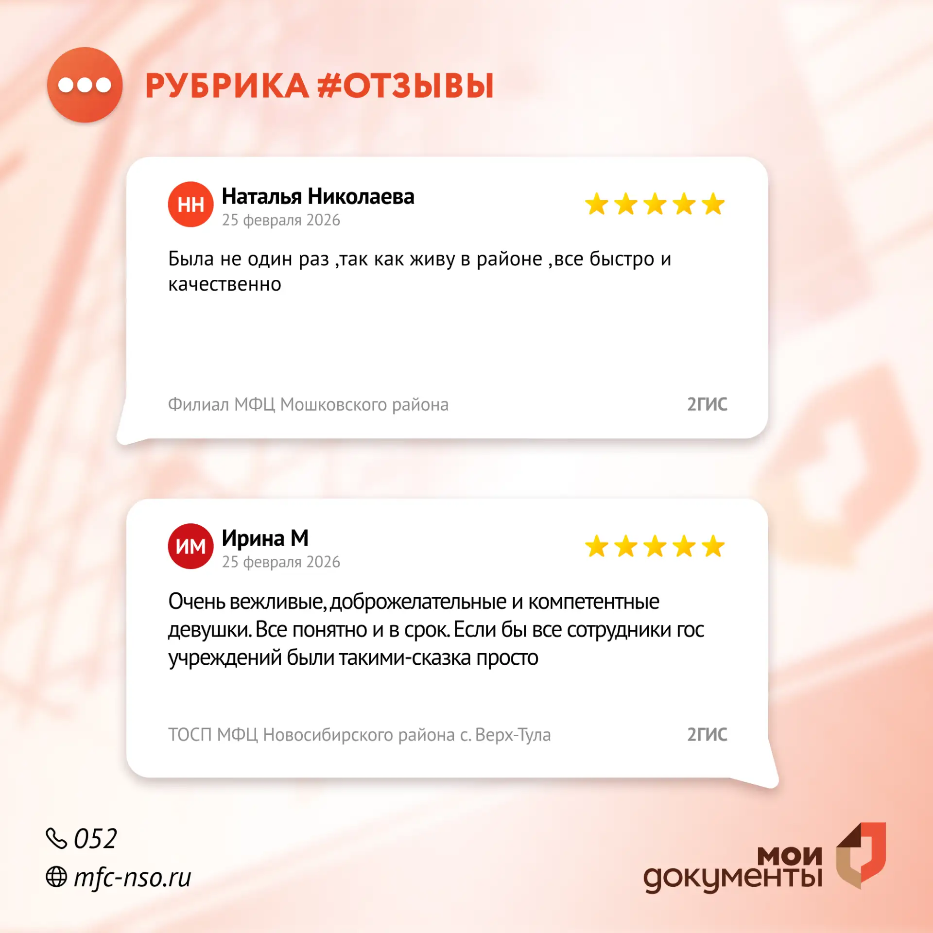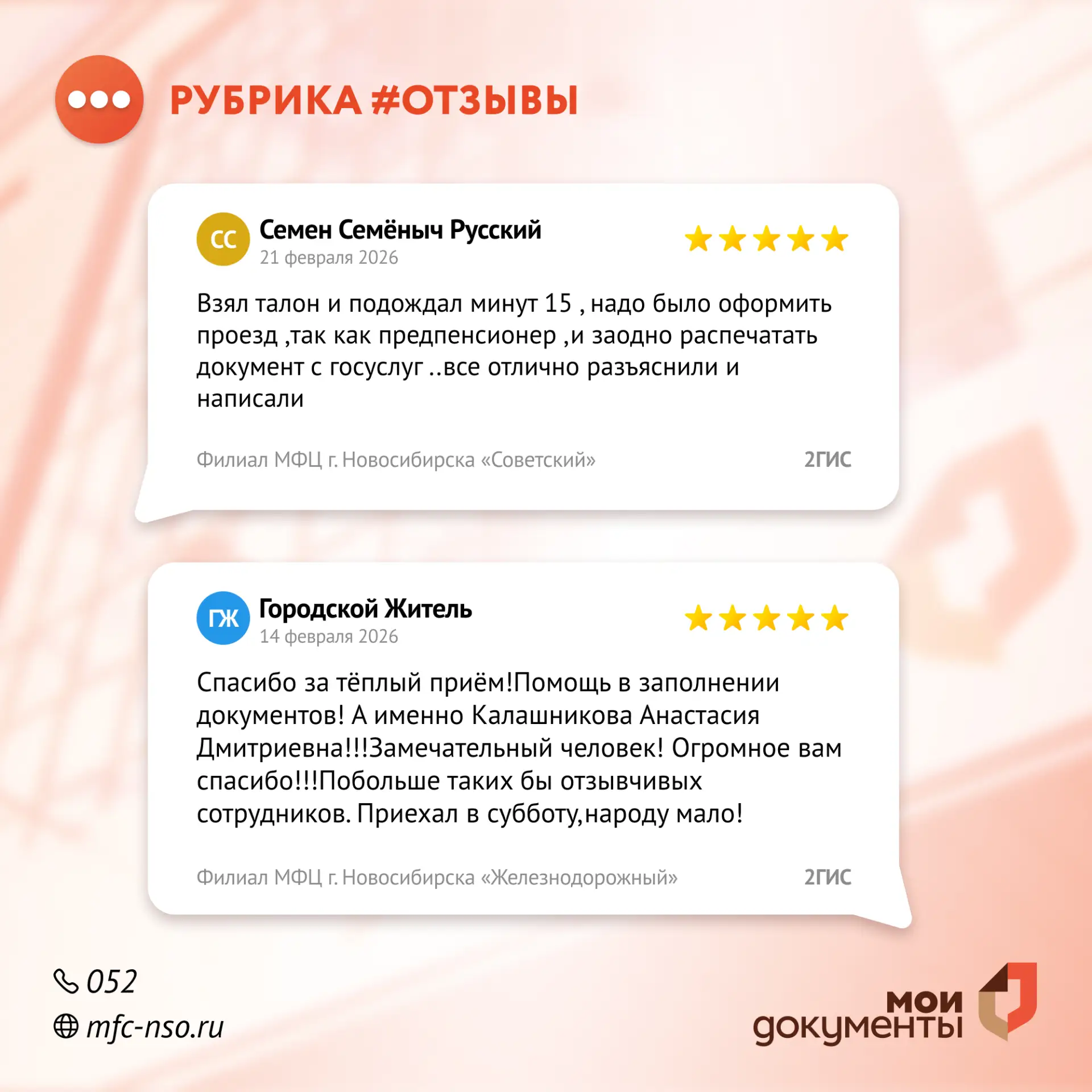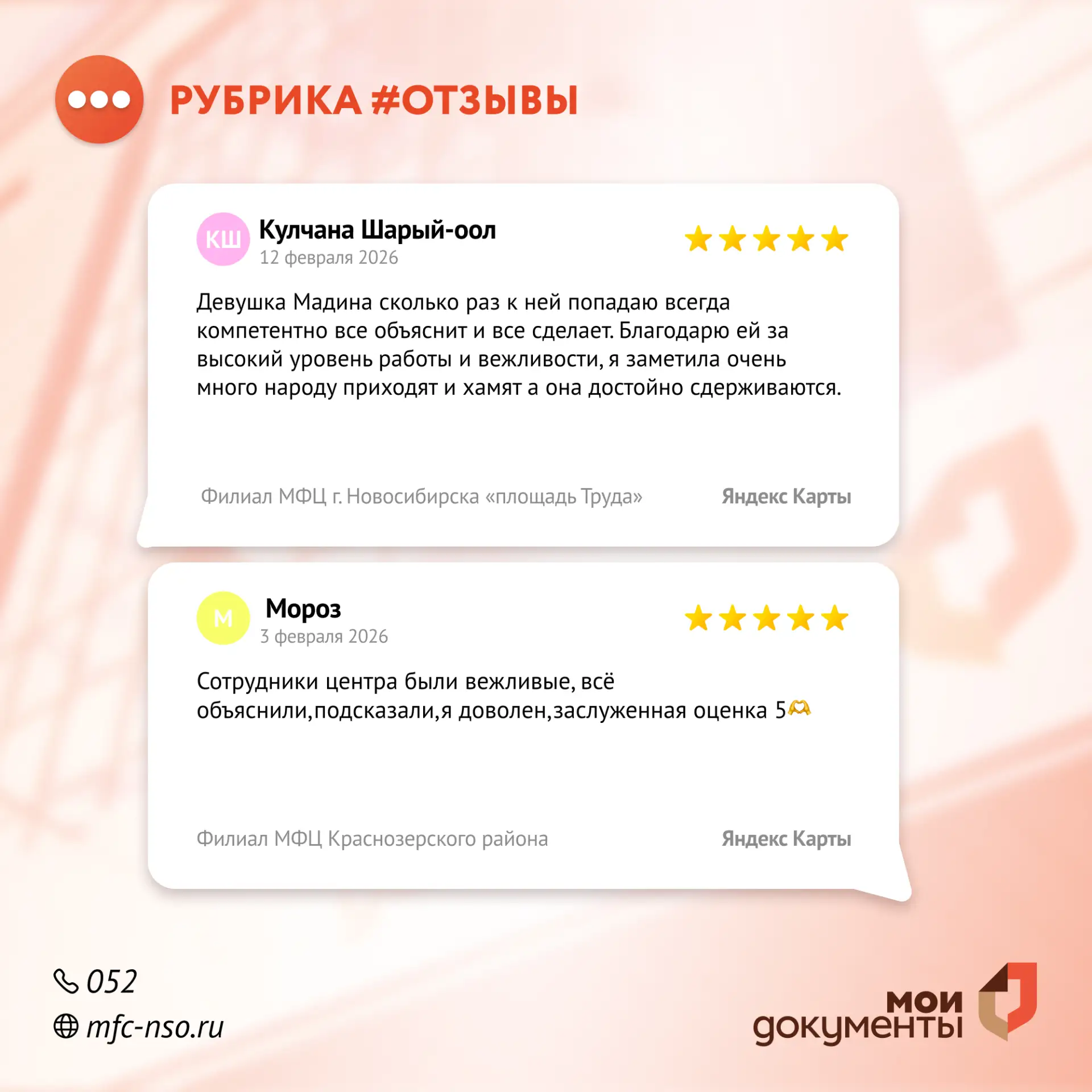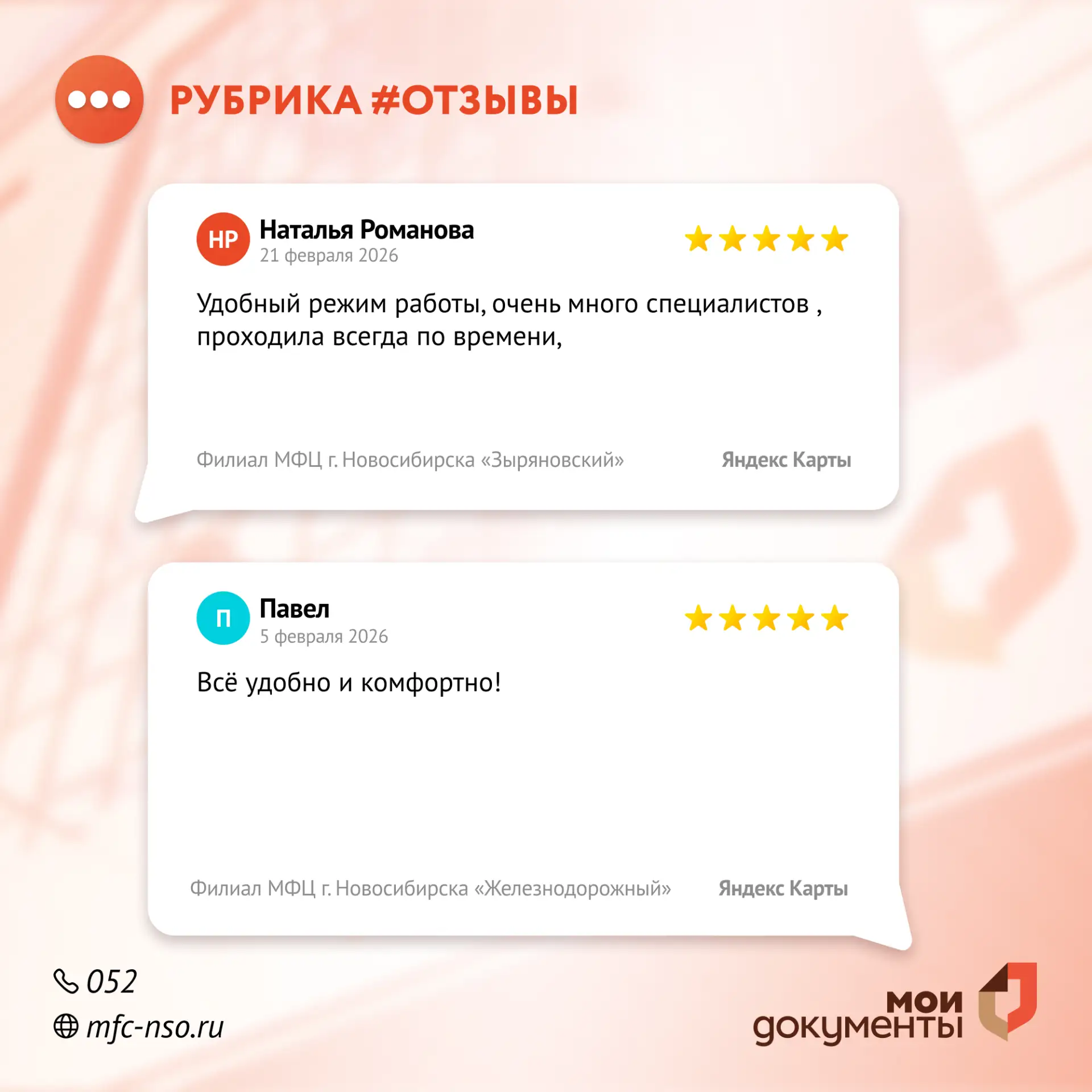 ❤ Уважаемые заявители, благодарим вас за оставленные отзывы о деятельности МФЦ Новосибирской области в «2ГИС» и «Яндекс Картах». Нам очень приятно читать ваши добрые слова о положительном опыте при посещении наших офисов.