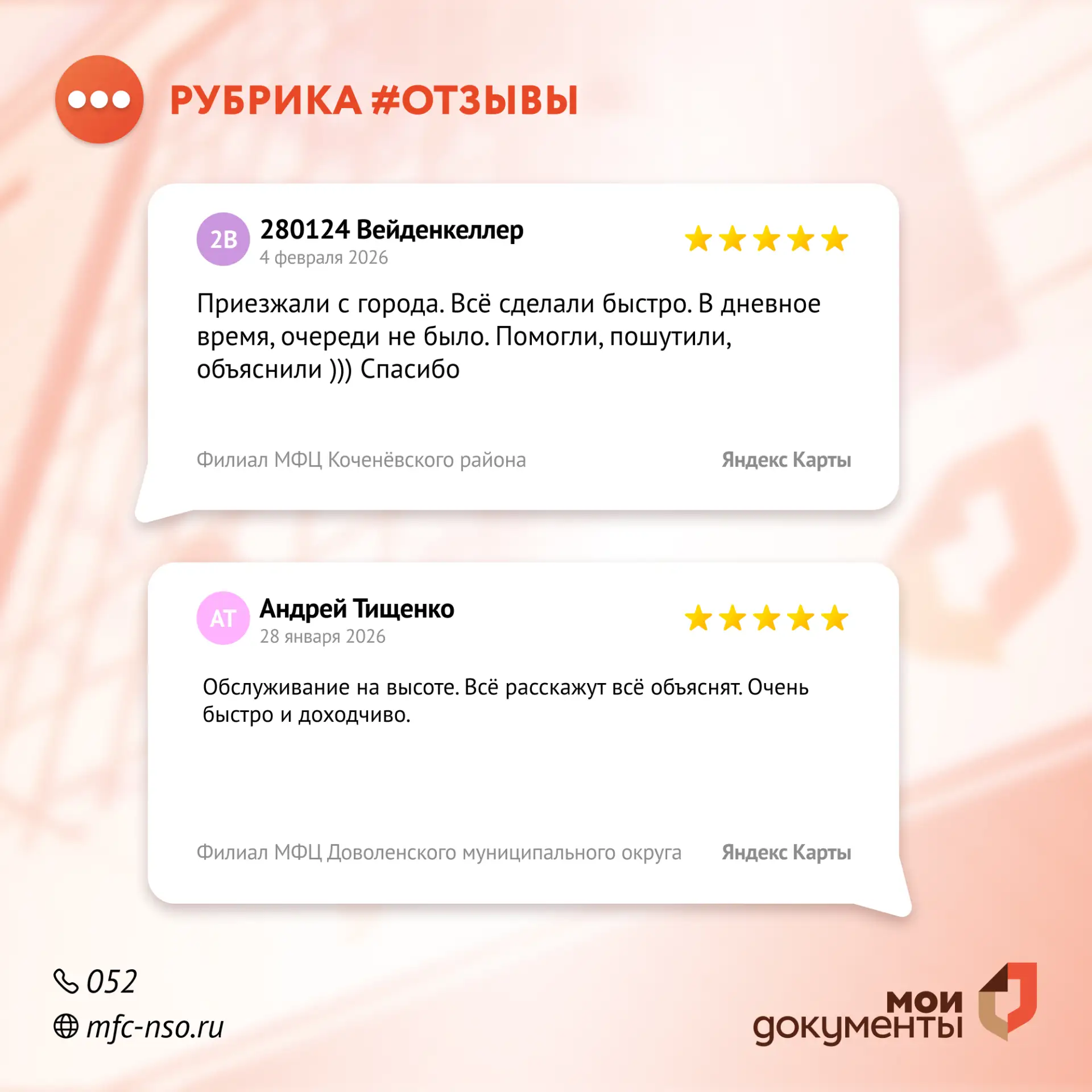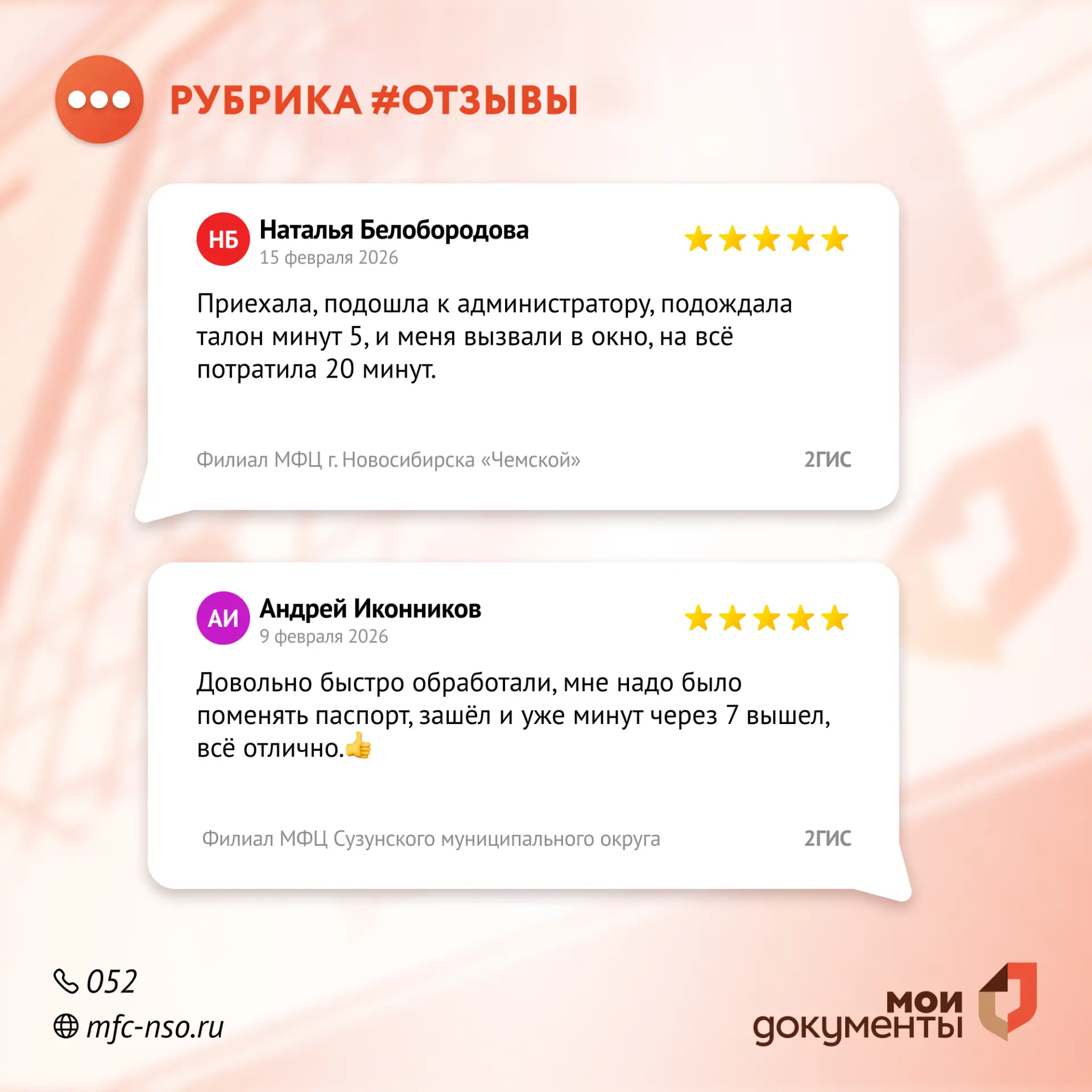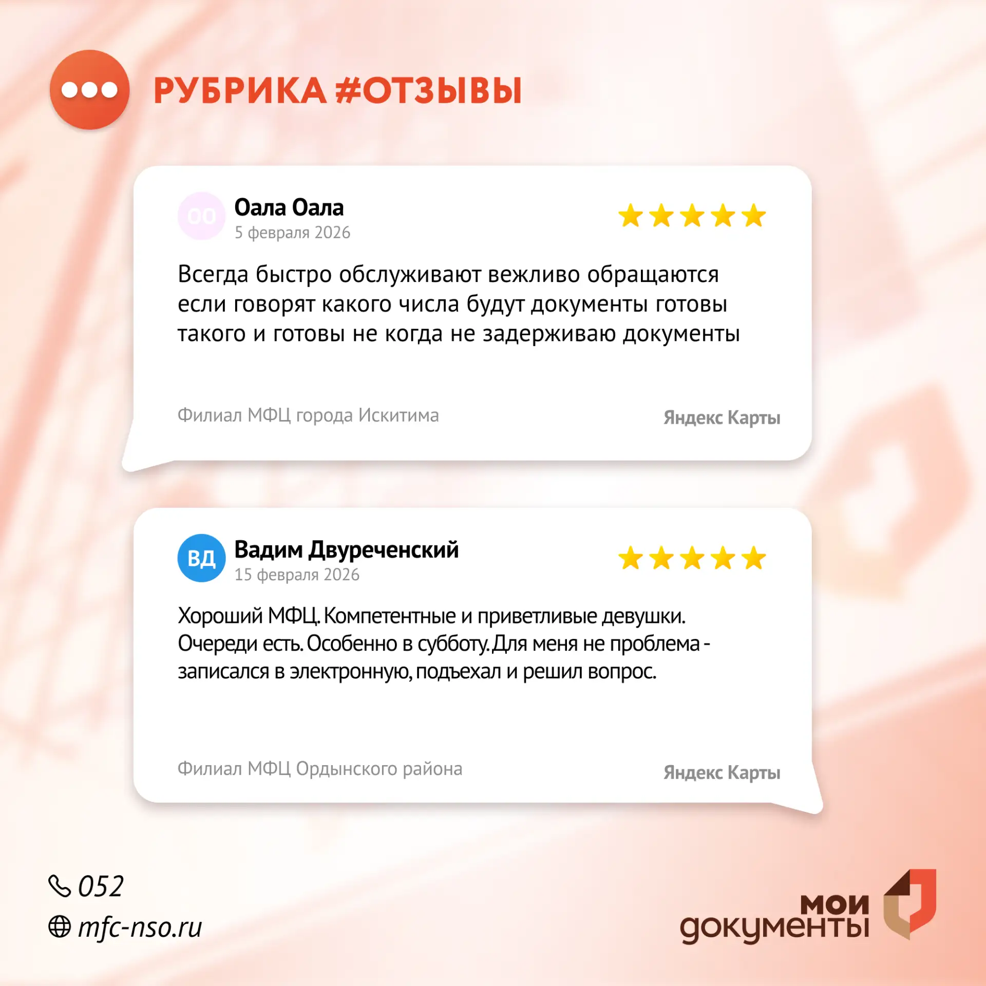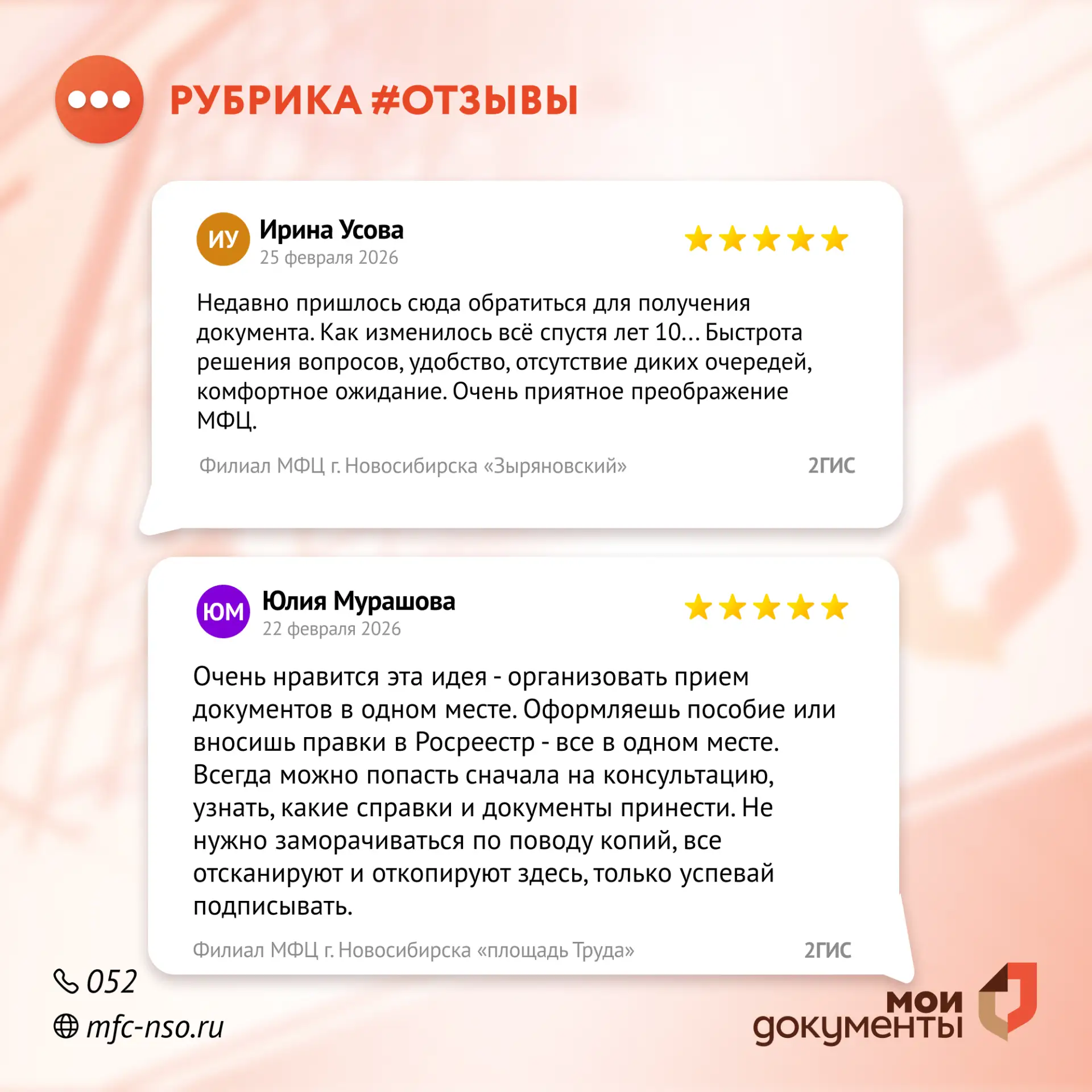 ❤ Уважаемые заявители, благодарим вас за оставленные отзывы о деятельности МФЦ Новосибирской области в «2ГИС» и «Яндекс Картах». Нам очень приятно читать ваши добрые слова о положительном опыте при посещении наших офисов.