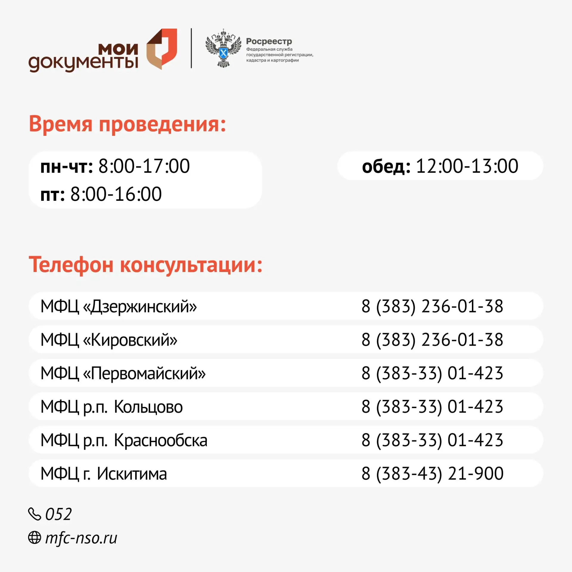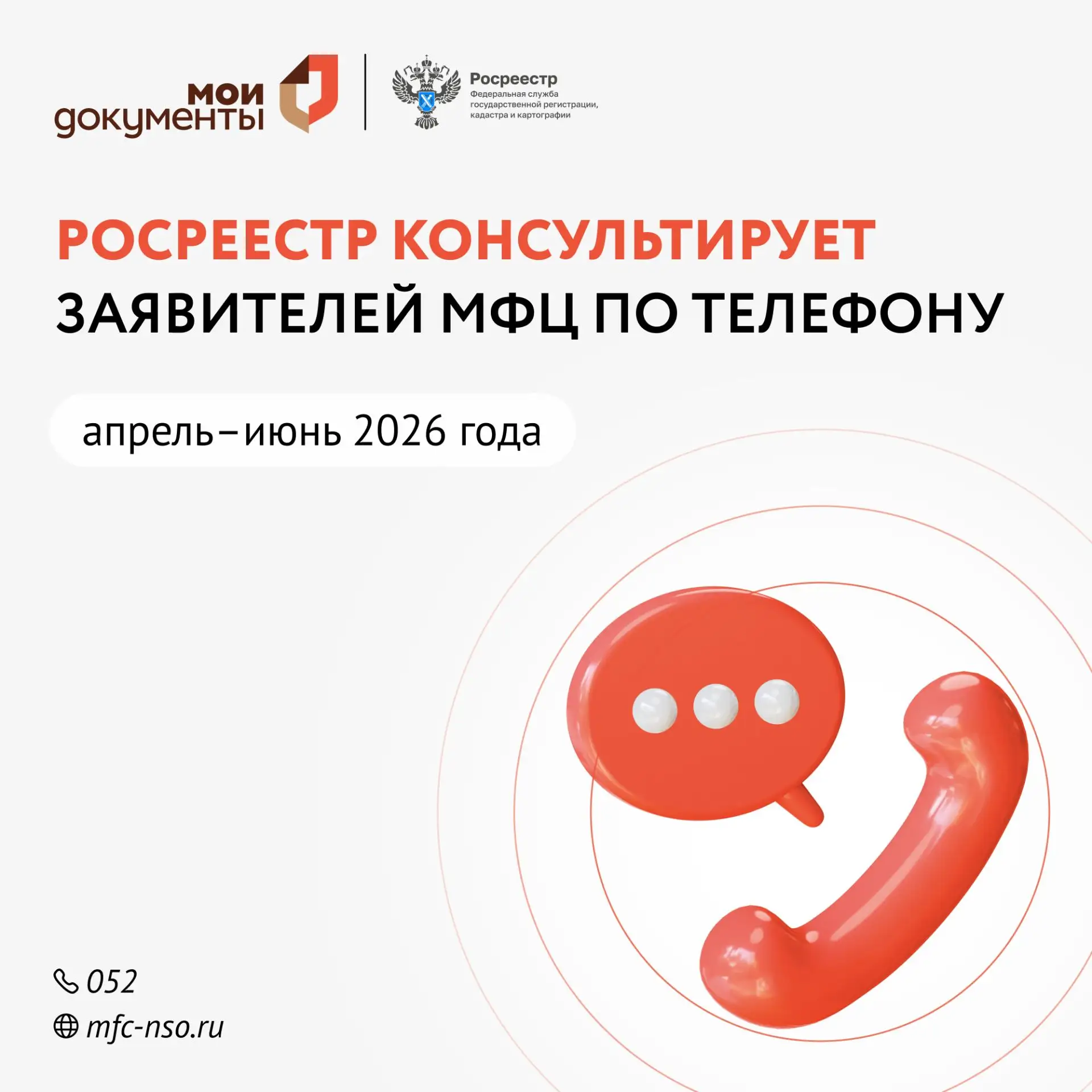 🗓🏗 С апреля по июнь 2026 года для заявителей МФЦ Новосибирской области представители Росреестра проводят телефонные консультации по вопросам оформления недвижимости.