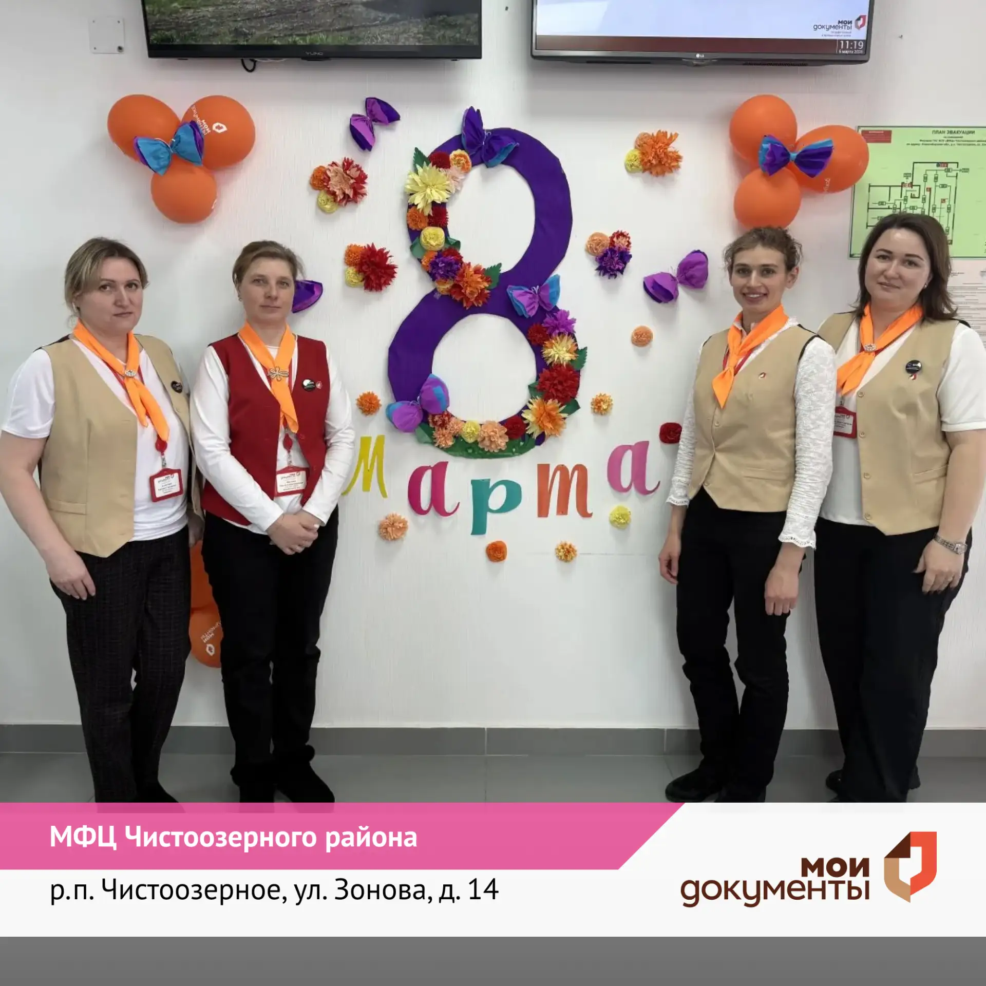 «Международный женский день — прекрасный повод сказать слова благодарности и поздравить наших заявительниц. Пусть этот день подарит вам хорошее настроение, улыбки и весеннее вдохновение», — отметил директор филиала МФЦ Чистоозерного района Вадим Блинов.
