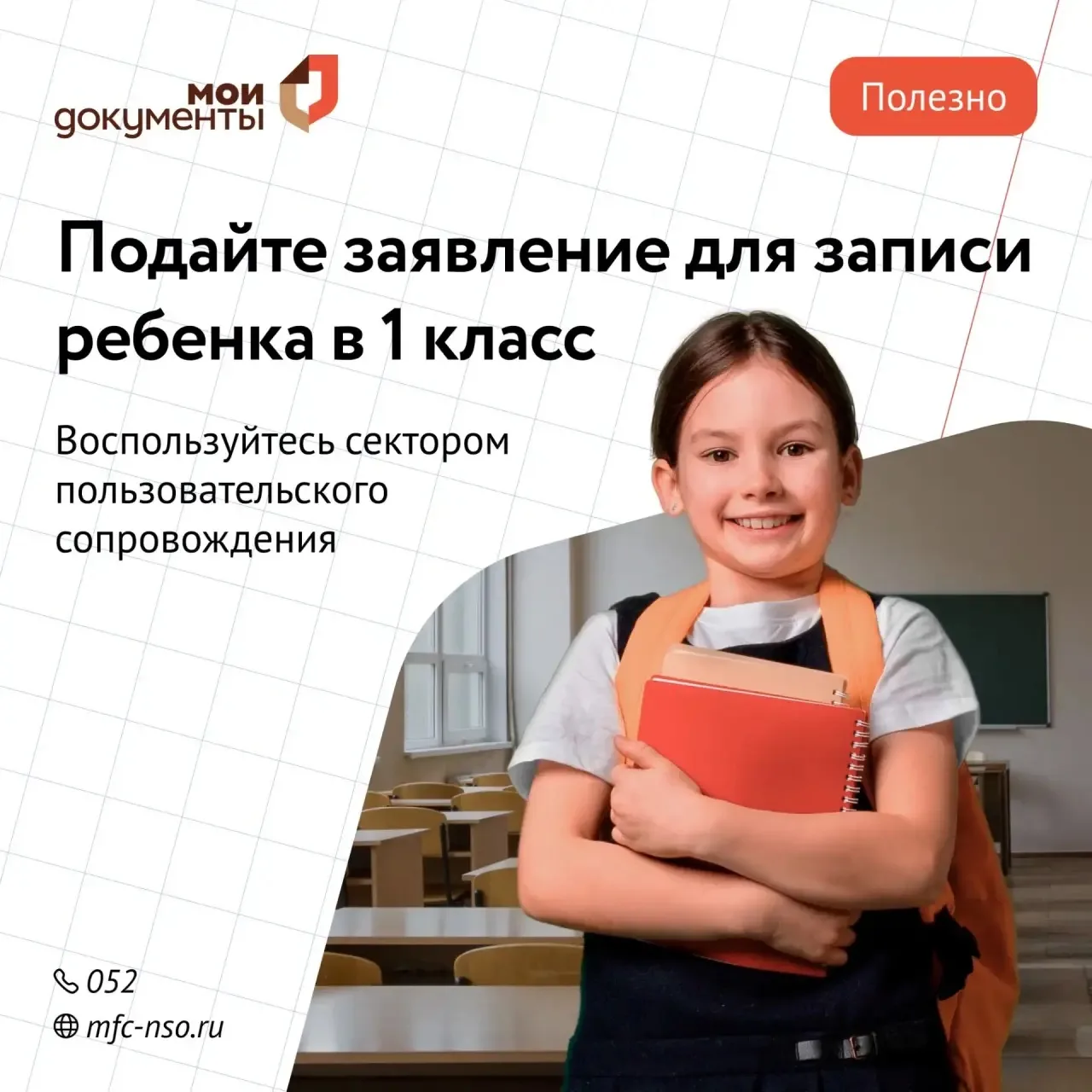 🧑🏫 1 апреля 2026 года стартовала приемная кампания записи детей в первый класс. Подать заявление на зачисление ребенка в школу можно в любом филиале МФЦ Новосибирской области через сектор пользовательского сопровождения (СПС).