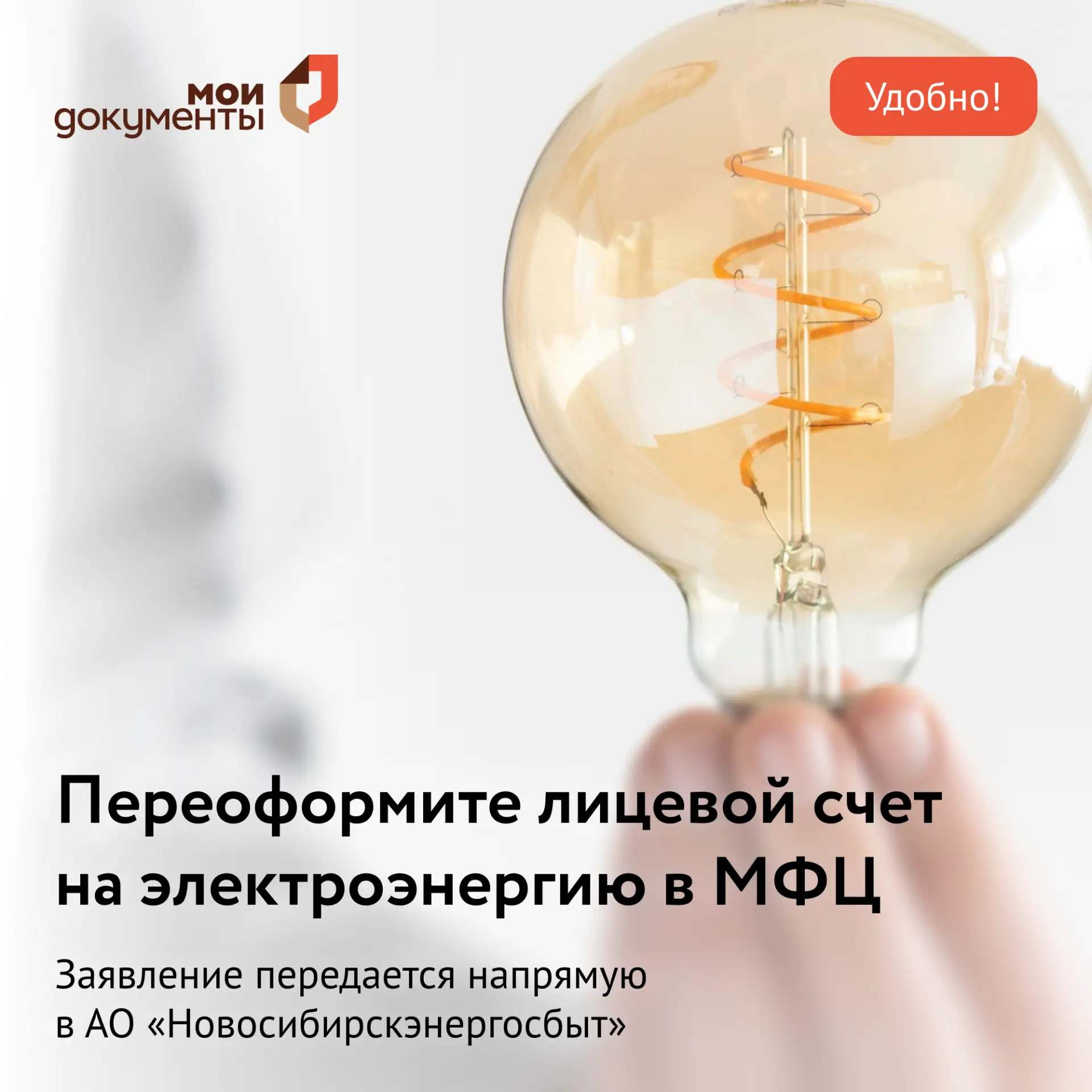 Переоформите лицевой счет на электроэнергию в МФЦ Новосибирской области!