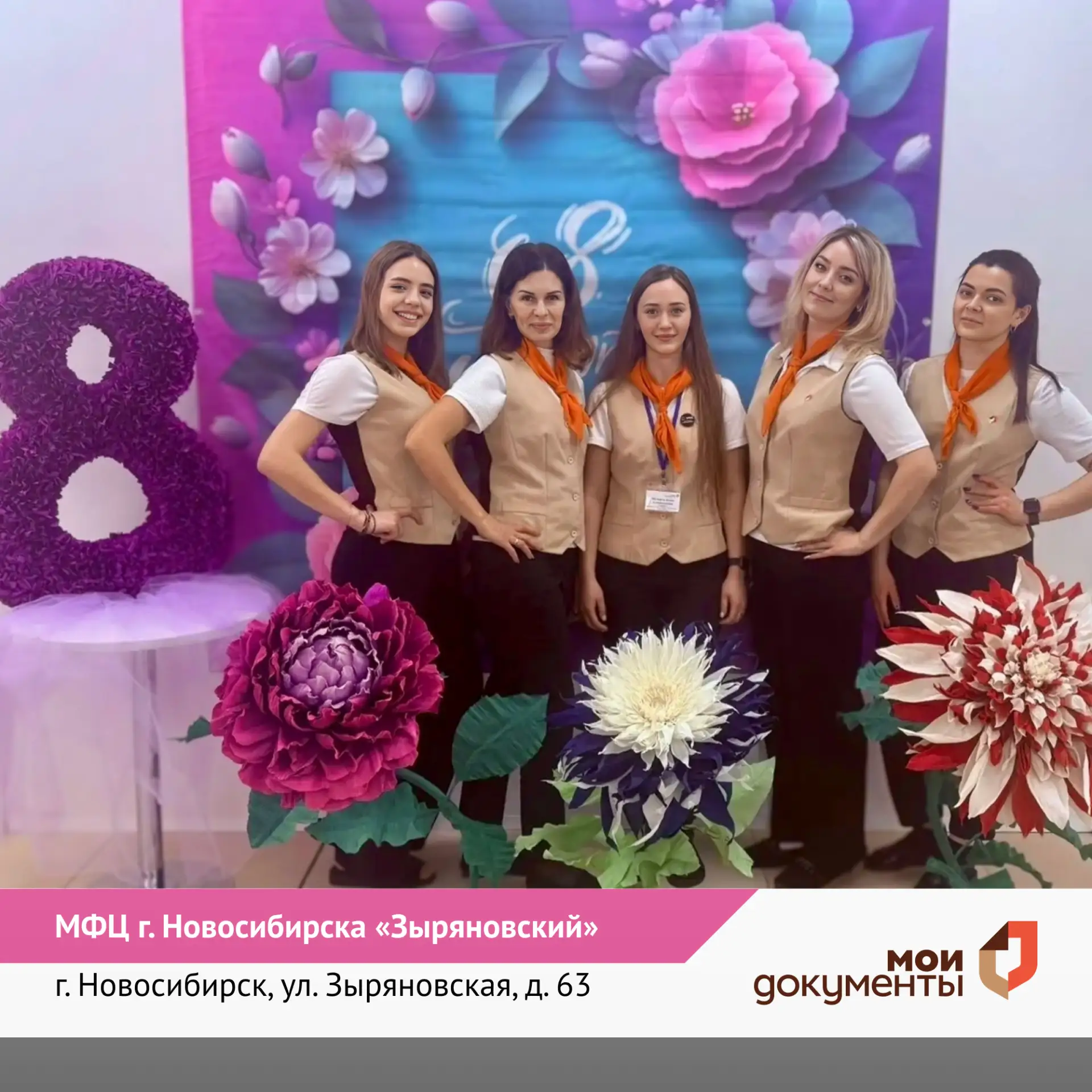 🌷 В преддверии Международного женского дня в филиалах МФЦ Новосибирской области появились праздничные фотозоны. Сотрудники постарались создать яркую и уютную атмосферу, чтобы визит за услугами стал еще приятнее.