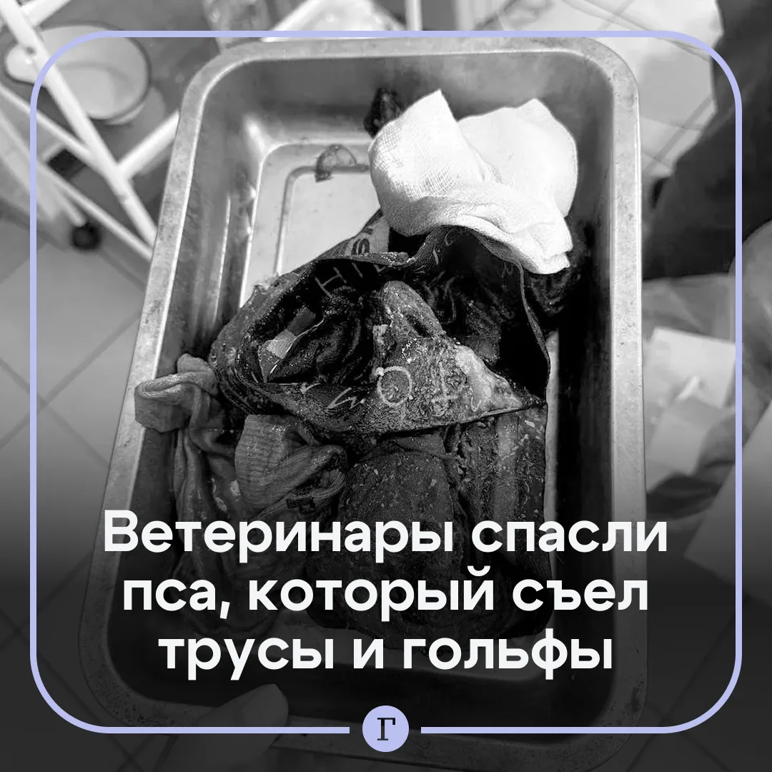 Леона срочно обследовали и прооперировали. Внутри пса обнаружили целый склад вещей: три эластичных гольфа и двое трусов.