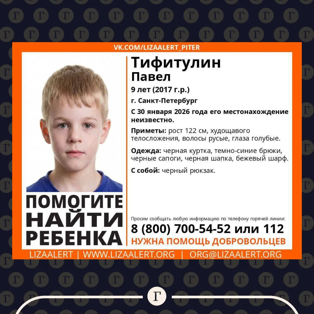 ❗️ В Санкт-Петербурге продолжаются поиски 9-летнего Паши, пропавшего 4 дня назад.