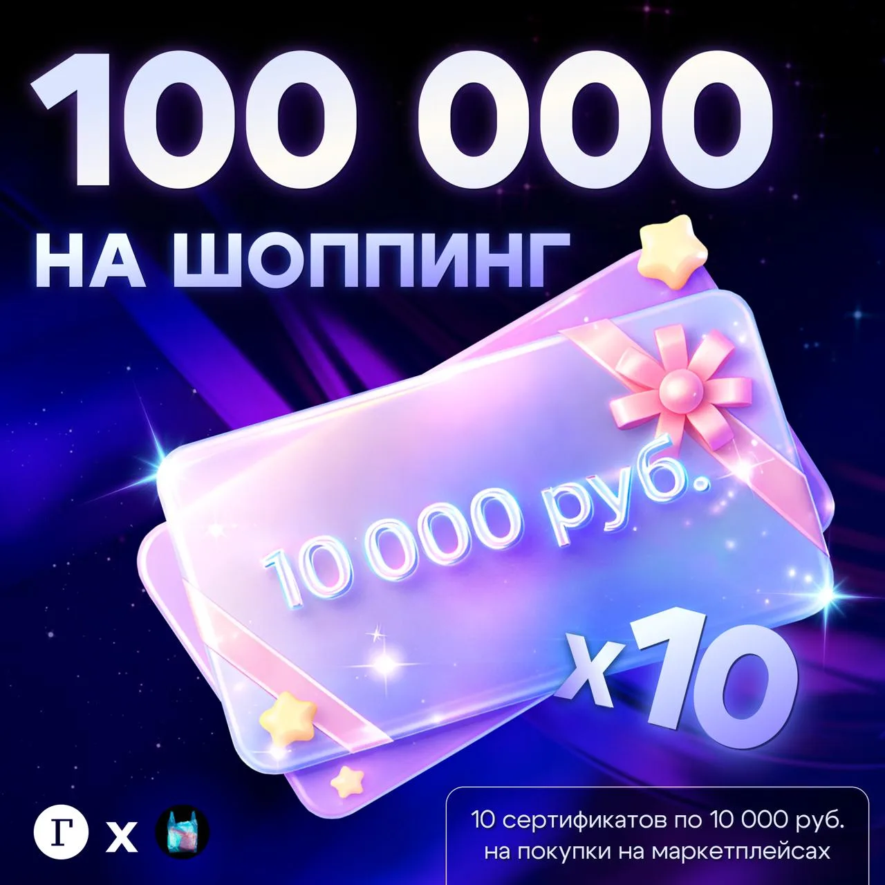 ❗️РОЗЫГРЫШ 100 000 РУБЛЕЙ! Дарим 10 сертификатов по 10 000 рублей на покупки на любом маркетплейсе.