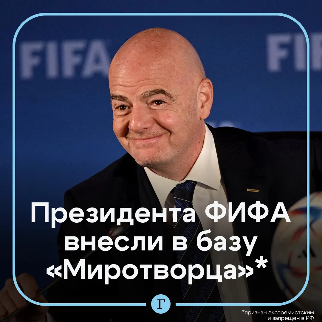 Президент ФИФА Джанни Инфантино внесен в списки сайта «Миротворец»*.