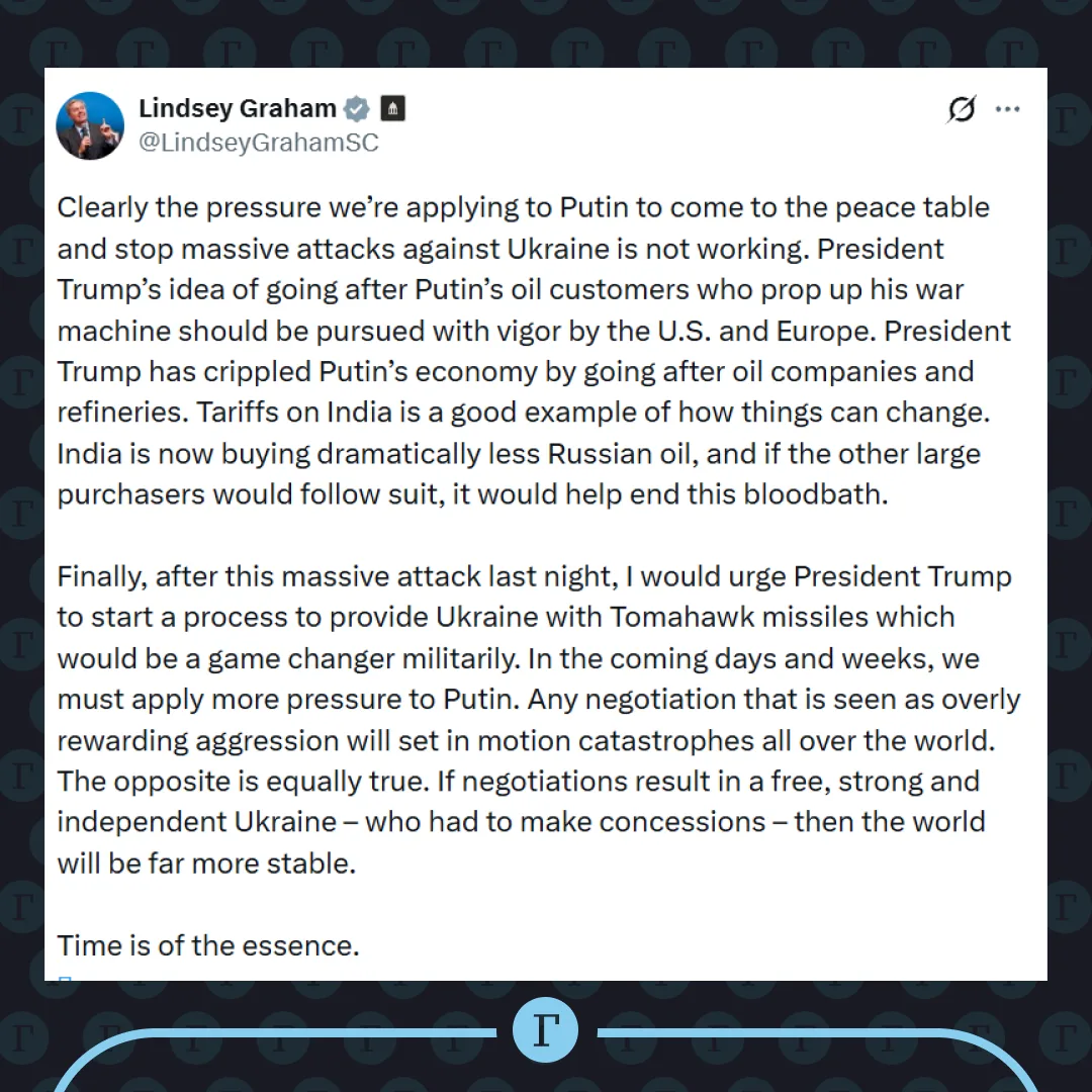 Сенатор-республиканец Линдси Грэм призвал Трампа передать Украине «Томагавки».