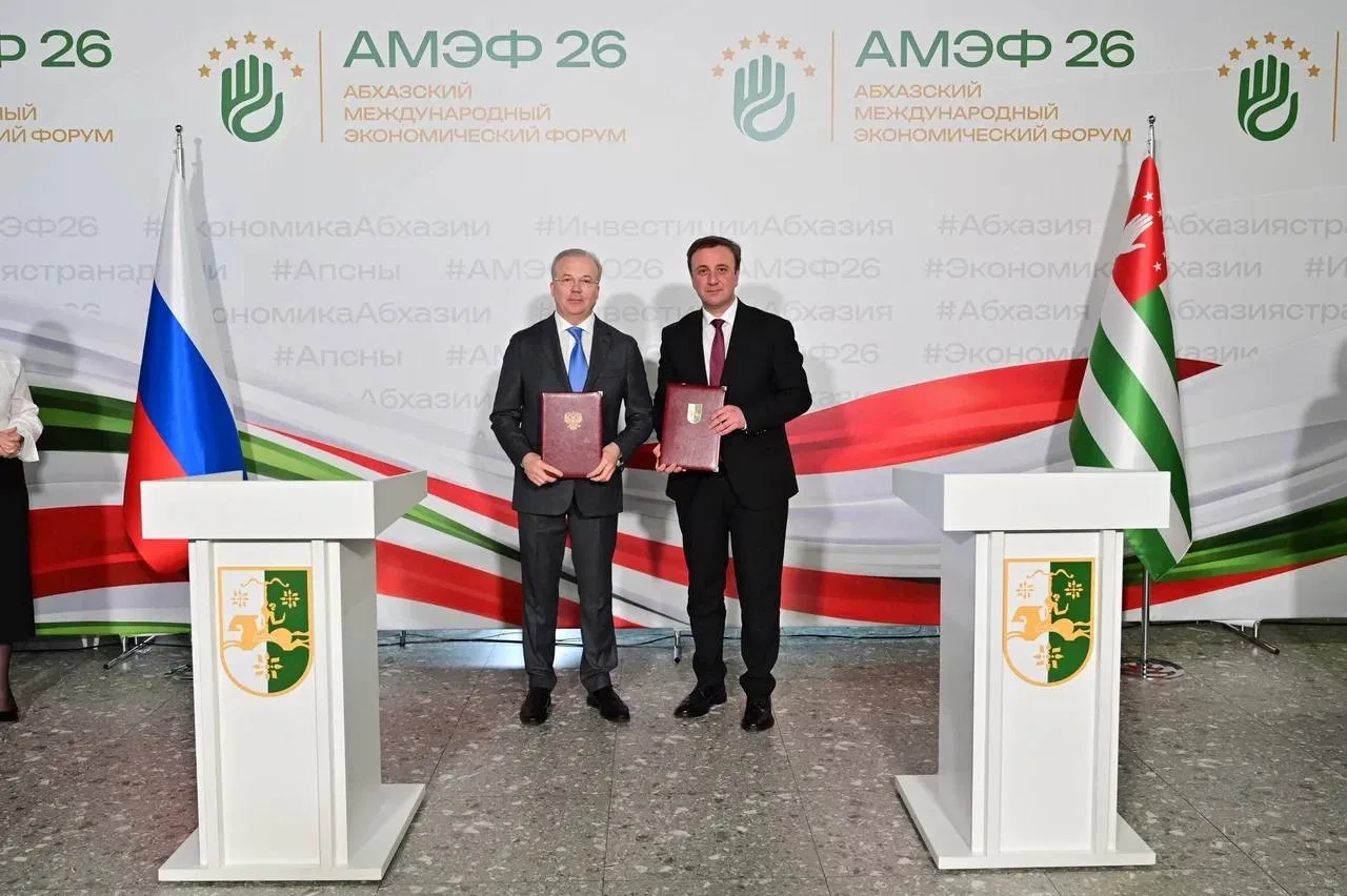 Андрей Назаров: "Подписали с Премьер-министром Абхазии Валерием Делба протокол о внесении изменений в соглашение 2023 года. Он расширяет наше сотрудничество в экономике, науке, туризме, культуре и социальной сфере.