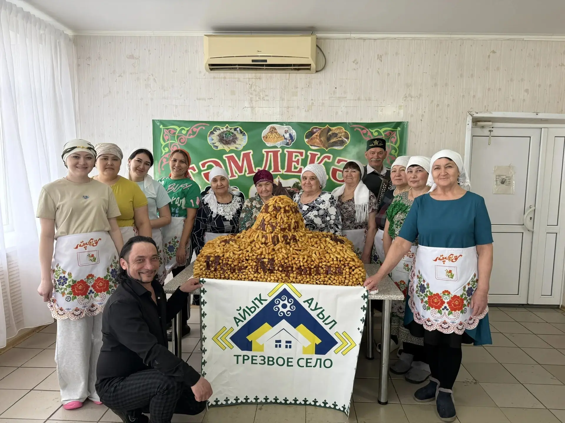 “Был тәмлекәсте бешереү өсөн 180 шт. йомортҡа, 16 кг. он, 12 кг. бал, 5 кг. шәкәр ҡомо, 30 литр көнбағыш майы тотондоҡ. Оло эште иртәнге сәғәт 9-ҙан Киров исемендәге ауыл хужалығы кооперативы ашханаһында башлап ебәрҙек. Бауырһаҡты Гәүһәр Әбдрәшитова рецебы буйынса бешерҙек. Ауылда үткән барлыҡ байрамдар, туйҙар табынын һәр ваҡыт уның телде йоторлоҡ сәк-сәктәре биҙәй. 16 апрелдә уңған хужабикәбеҙ үҙенең 82 йәшлек юбилейын билдәләйәсәк.