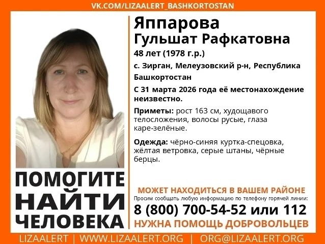 Мәләүез районында 48 йәшлек Гөлшат Рәфҡәт ҡыҙы Яппарова ғәйеп булған.