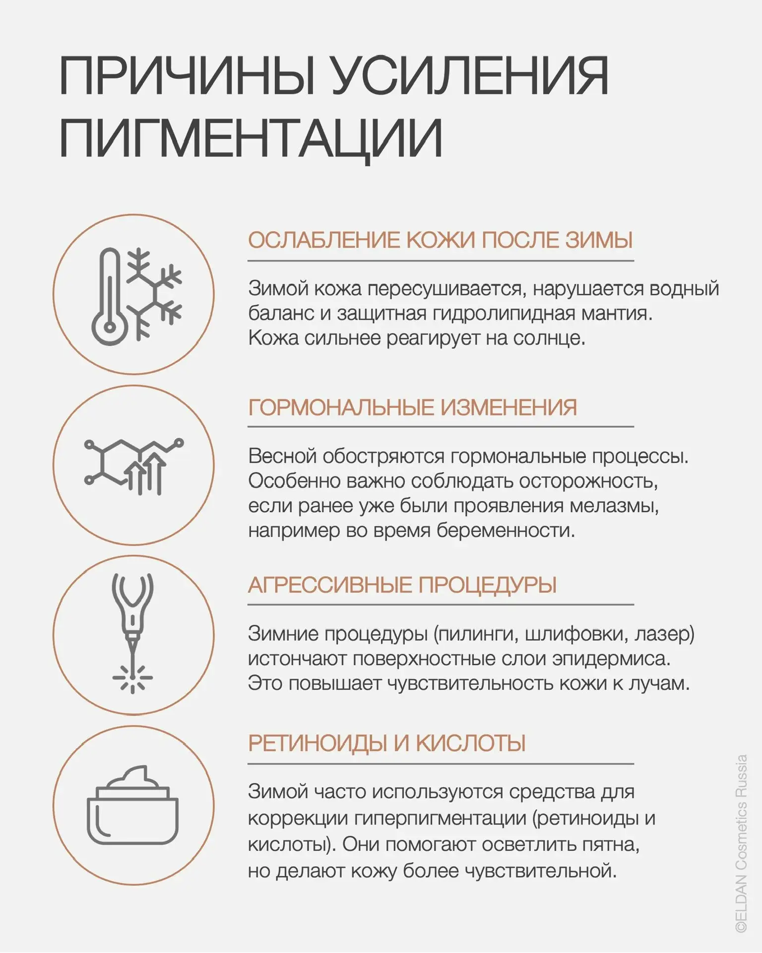 💁🏼♀️ Большинство изменений кожи, ассоциированных со старением (морщины, пожелтение и истончение кожи, ксероз, лентиго и телеангиоэктазии), – результат кумулятивного действия УФ-облучения. Важно отметить, что если хроностарение определяется возрастом человека и его генетическими особенностями, то фотостарение зависит от дозы инсоляции и кожной пигментации.