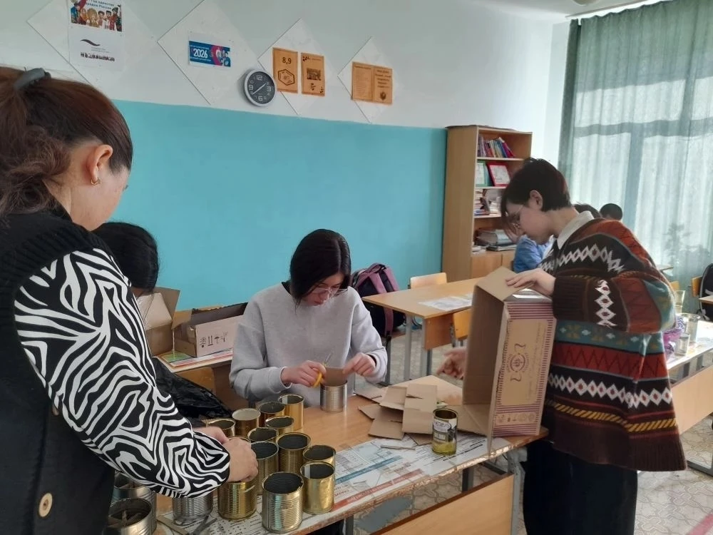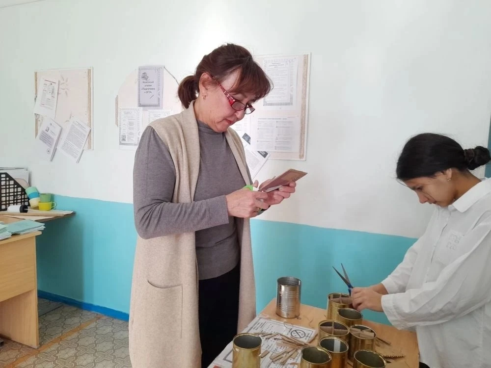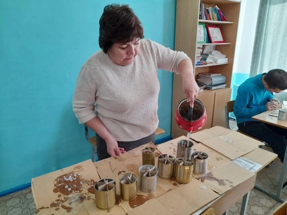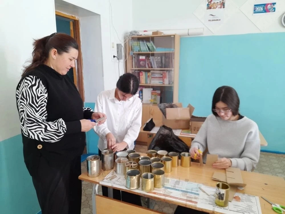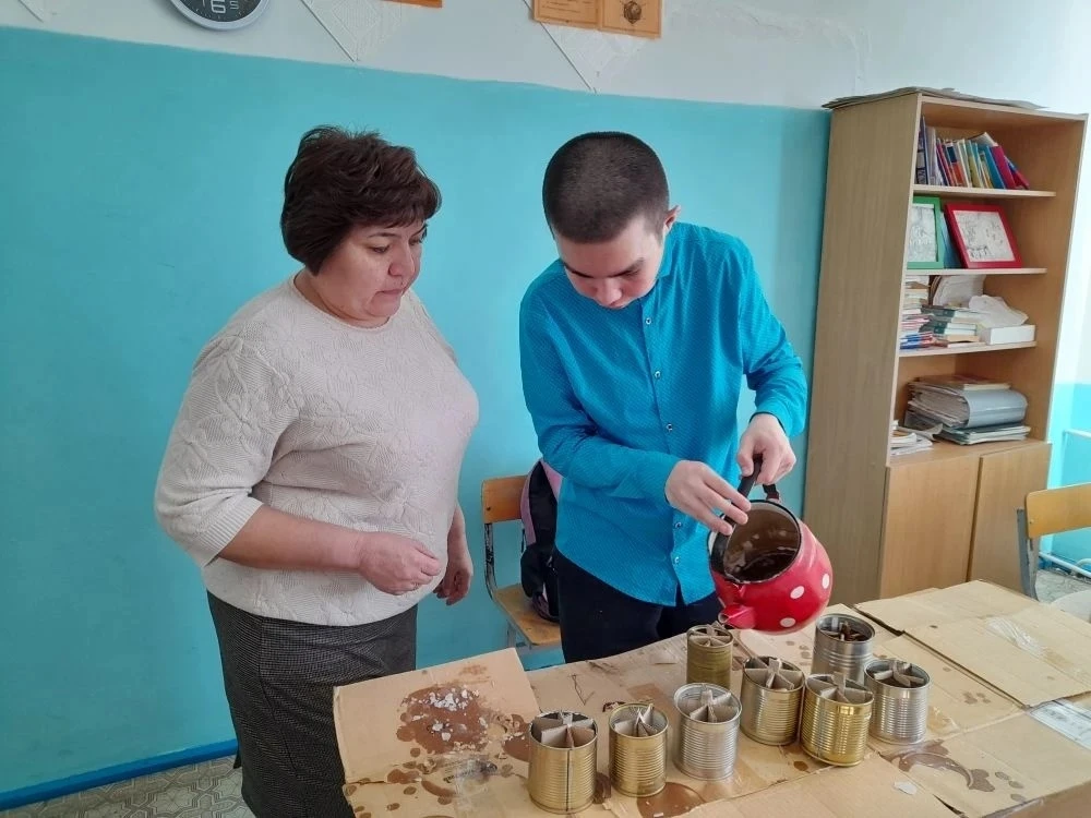 Ученики 8 -9 классов Худайбердинской школы вместе с классным руководителем Амерхановой Д.Ш, учителем математики Узбековой Э.Х и библиотекарем Ялчинской модульной библиотеки Юдаевой А.Ф. делали окопные свечи.