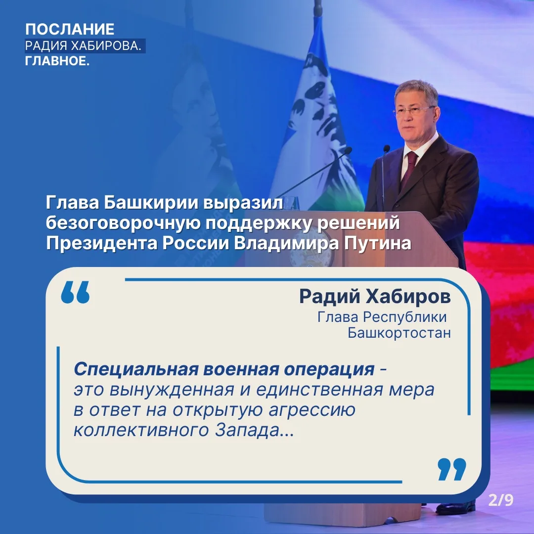 ✅Глава Башкирии Радий Хабиров выразил безоговорочную поддержку решений Президента России Владимира Путина.