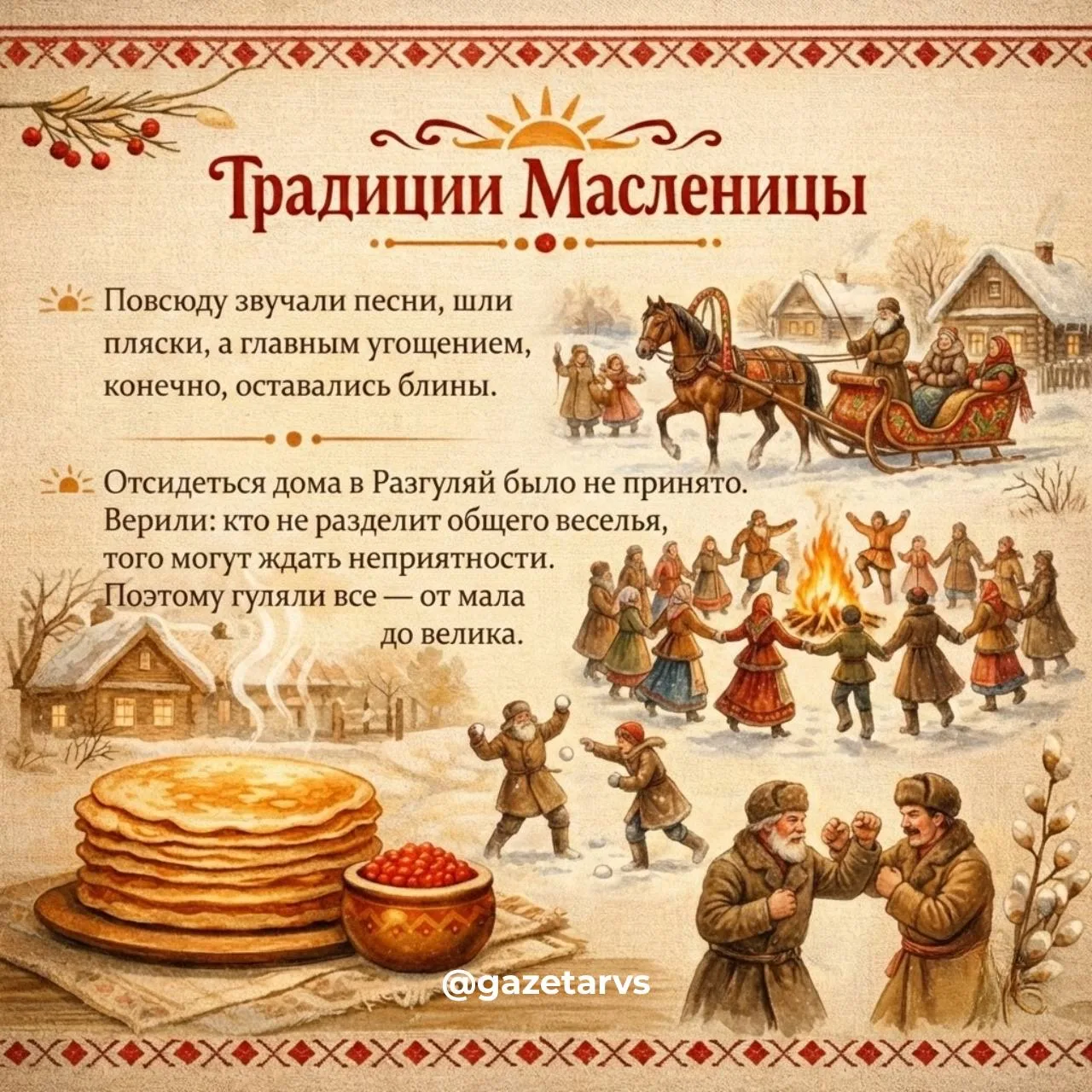 🔹 21 февраля в 13.00 — народные гулянья «Гуляй, Масленица!»
