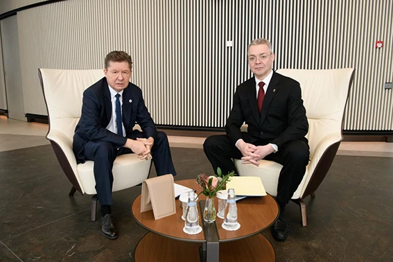 Алексей Миллер и Губернатор Ставропольского края Владимир Владимиров обсудили развитие системы газоснабжения региона.