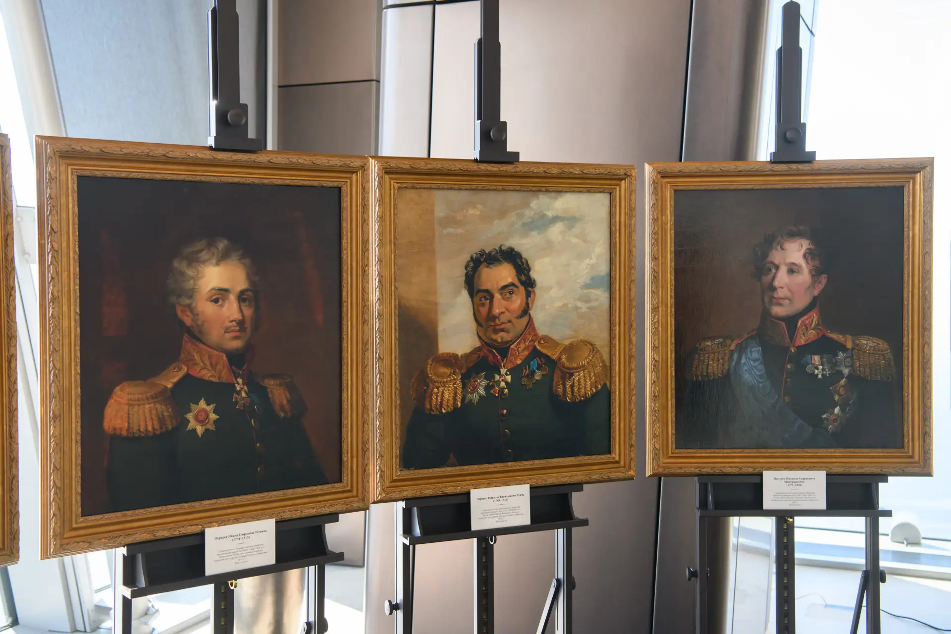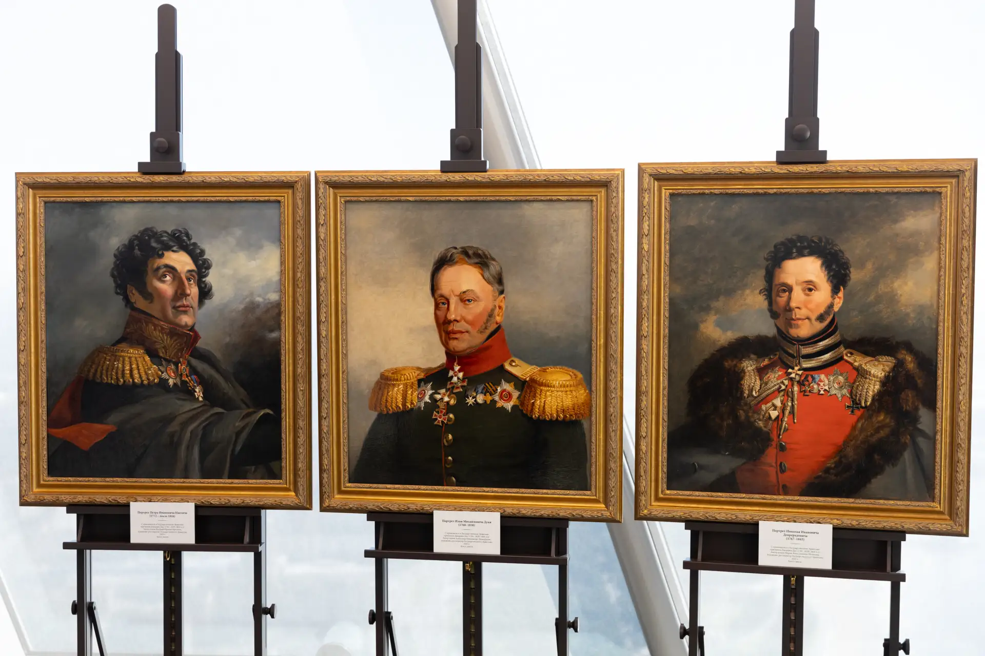 Копии портретов изготовлены по заказу «Газпрома» Государственным Эрмитажем, где хранятся оригиналы работ. На портретах изображены российские генералы из знаменитой «Галереи героев 1812 года»: Николай Вуич, Николай Депрерадович, Илья Дука, Петр Ивелич, Михаил Милорадович, Иван Шевич и Георгий Эммануэль, а также герой русско-турецкой войны 1768-1774 гг. генерал-лейтенант Семен Зорич и выдающийся реформатор народного просвещения Теодор Янкович де Мириево.