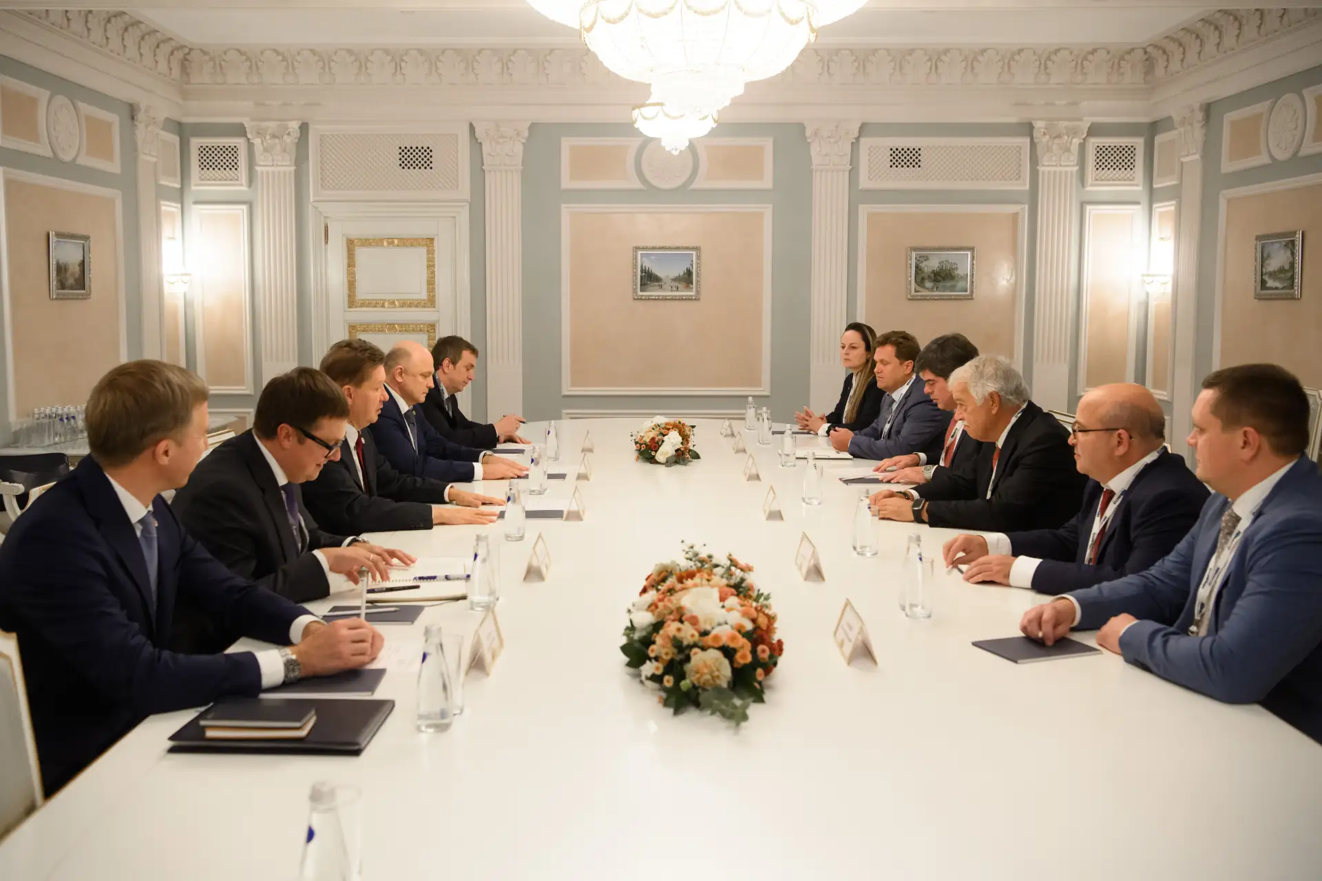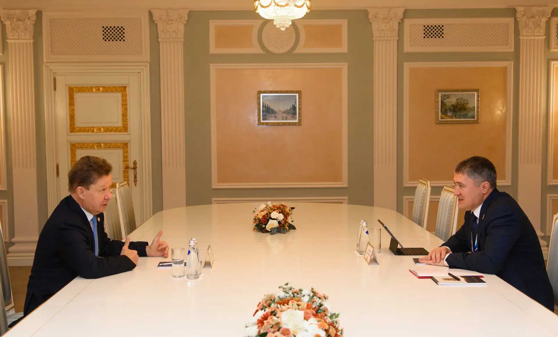 ПМГФ-2025: состоялась рабочая встреча Алексея Миллера и главы группы ОМК Анатолия Седых.