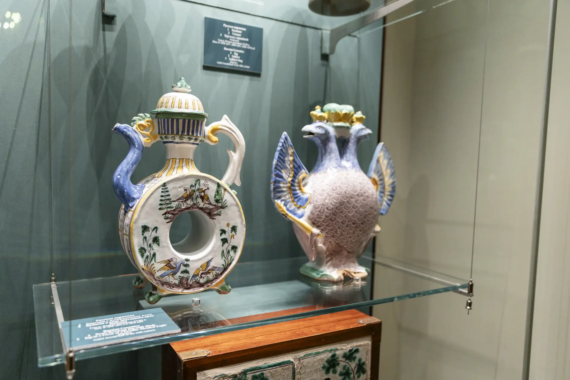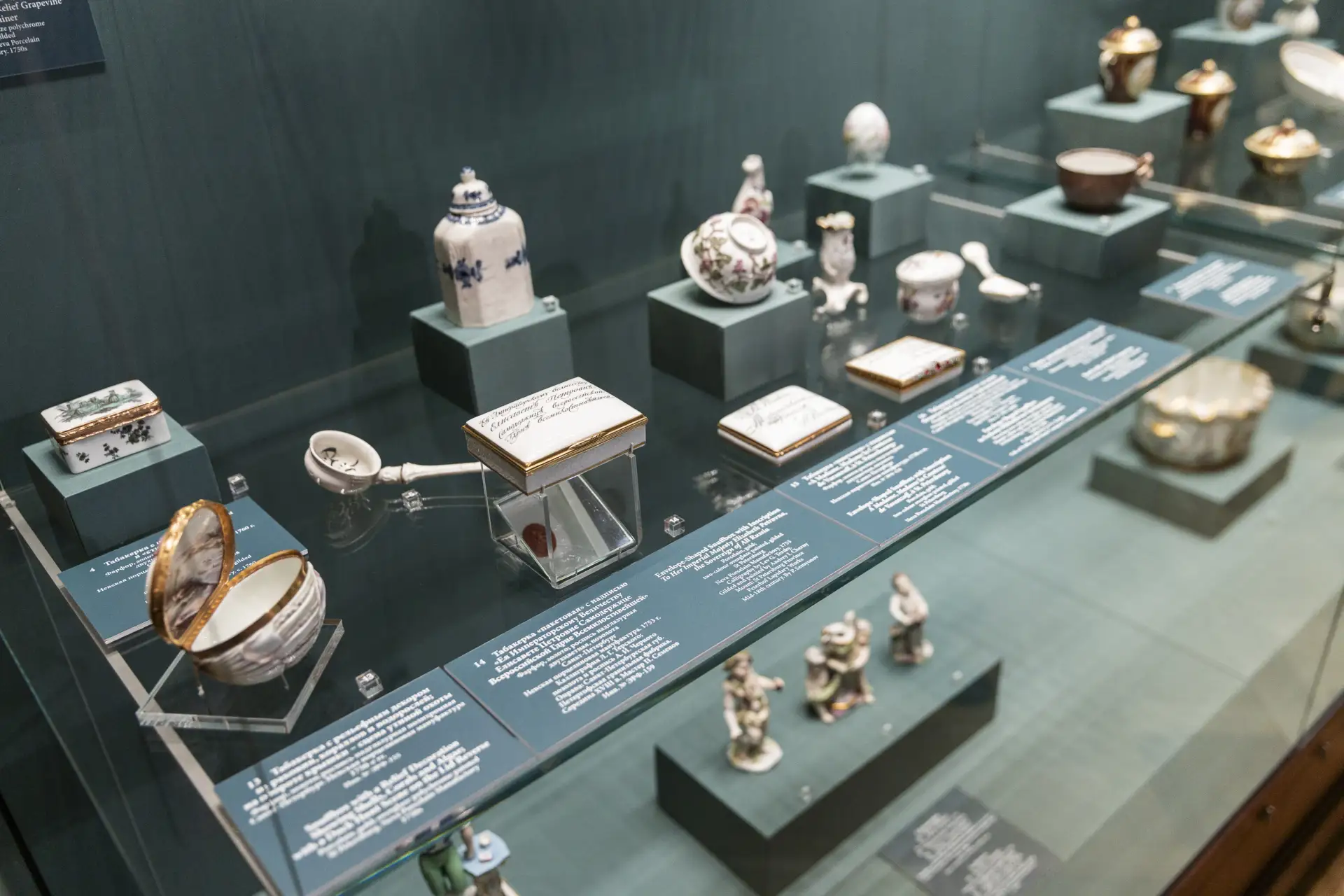 Кроме этого, в зале демонстрируются изделия из олова и меди, выпущенные на основанных Петром Великим заводах.
