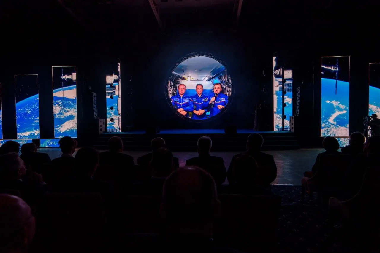 С приветственными словами в честь 60-летия ООО «Газпром трансгаз Югорск» к работникам предприятия обратился экипаж Международной космической станции - космонавты Роскосмоса Сергей Кудь-Сверчков, Сергей Микаев и Олег Платонов.