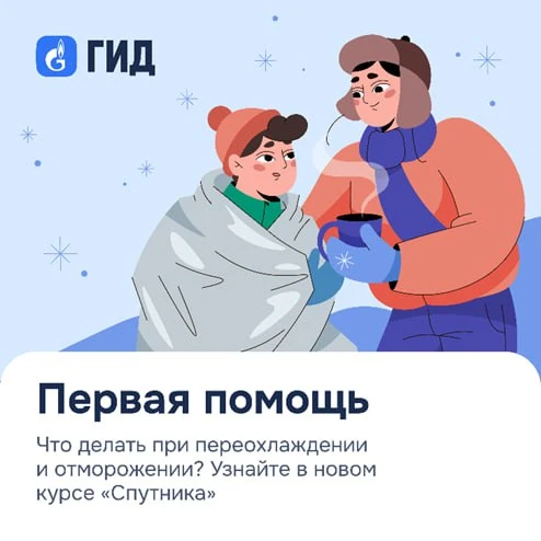 ➡️ Кликните, чтобы перейти в приложение ГИД и открыть новый курс «Первая помощь: переохлаждение и отморожение»