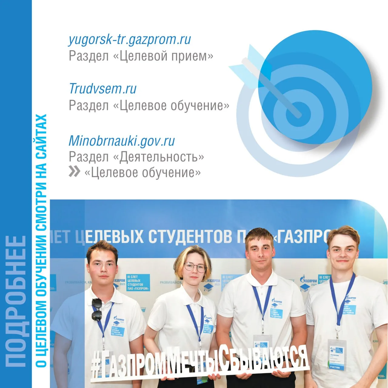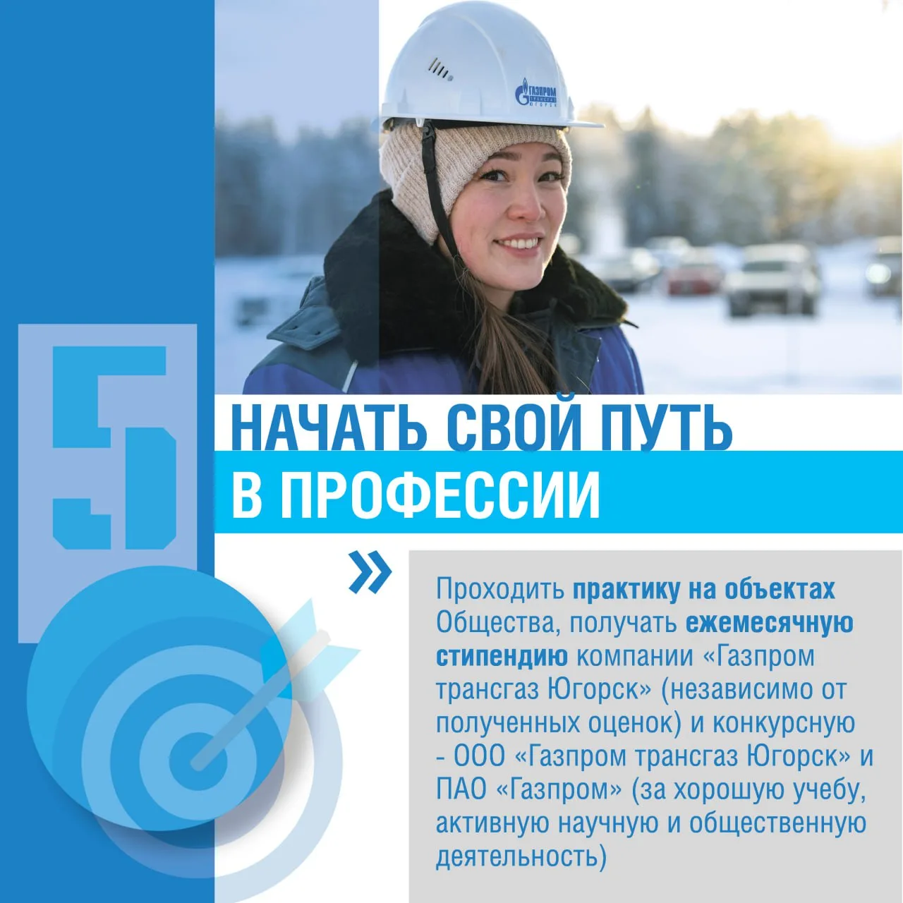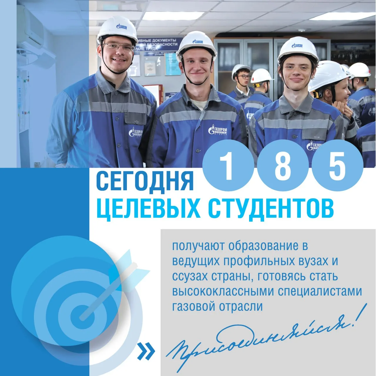 От молодых людей зависит развитие нашей компании и энергетики в стране, поэтому нам важно помогать молодежи и растить профессионалов заранее. Прямо сейчас востребованное образование получают 185 целевых студентов «Газпром трансгаз Югорска». Присоединяйся!