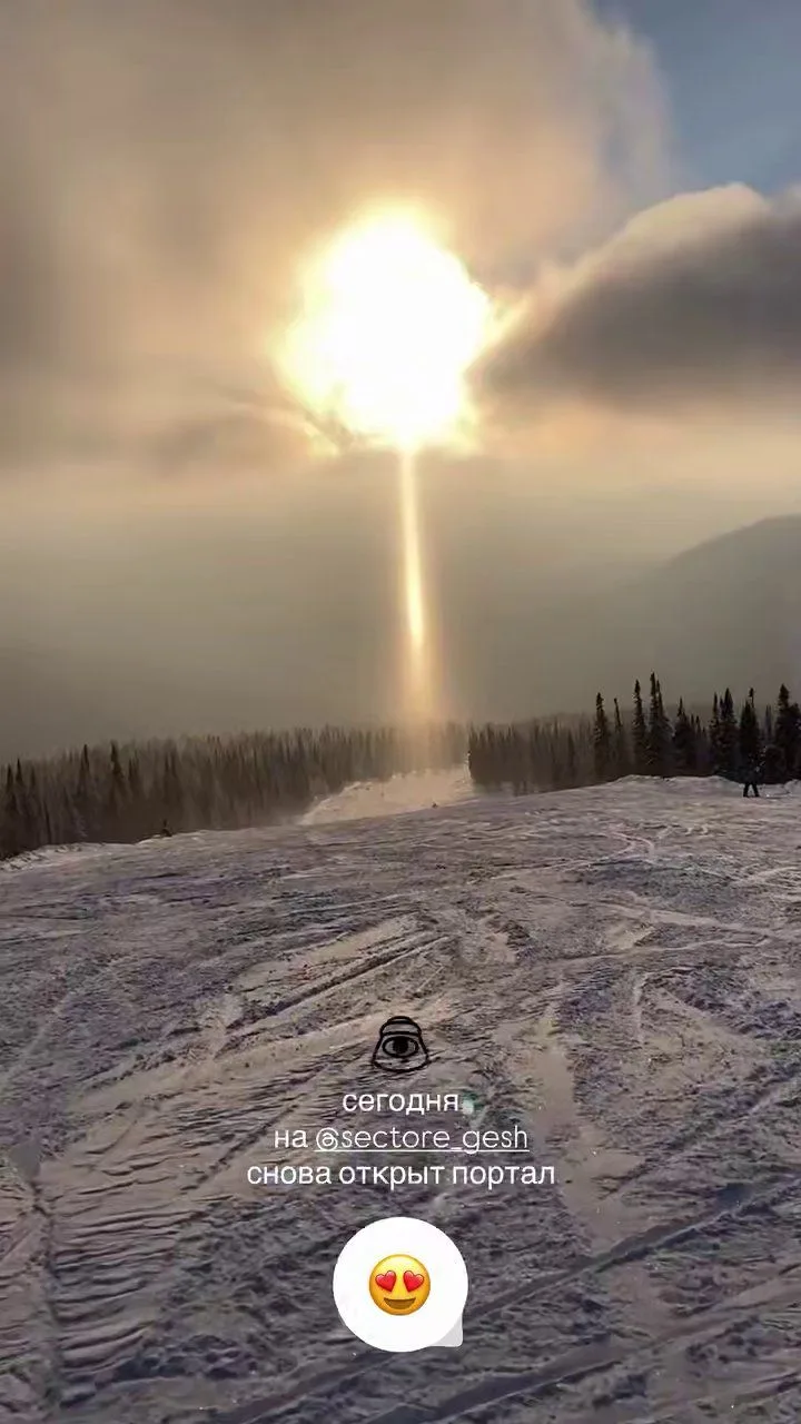 📍 Солнечный столб, отражённый снегом, «открыл портал» в Шерегеше (Кемеровская область), а в Санкт-Петербурге, как положено, отражался вверх от фонарей.