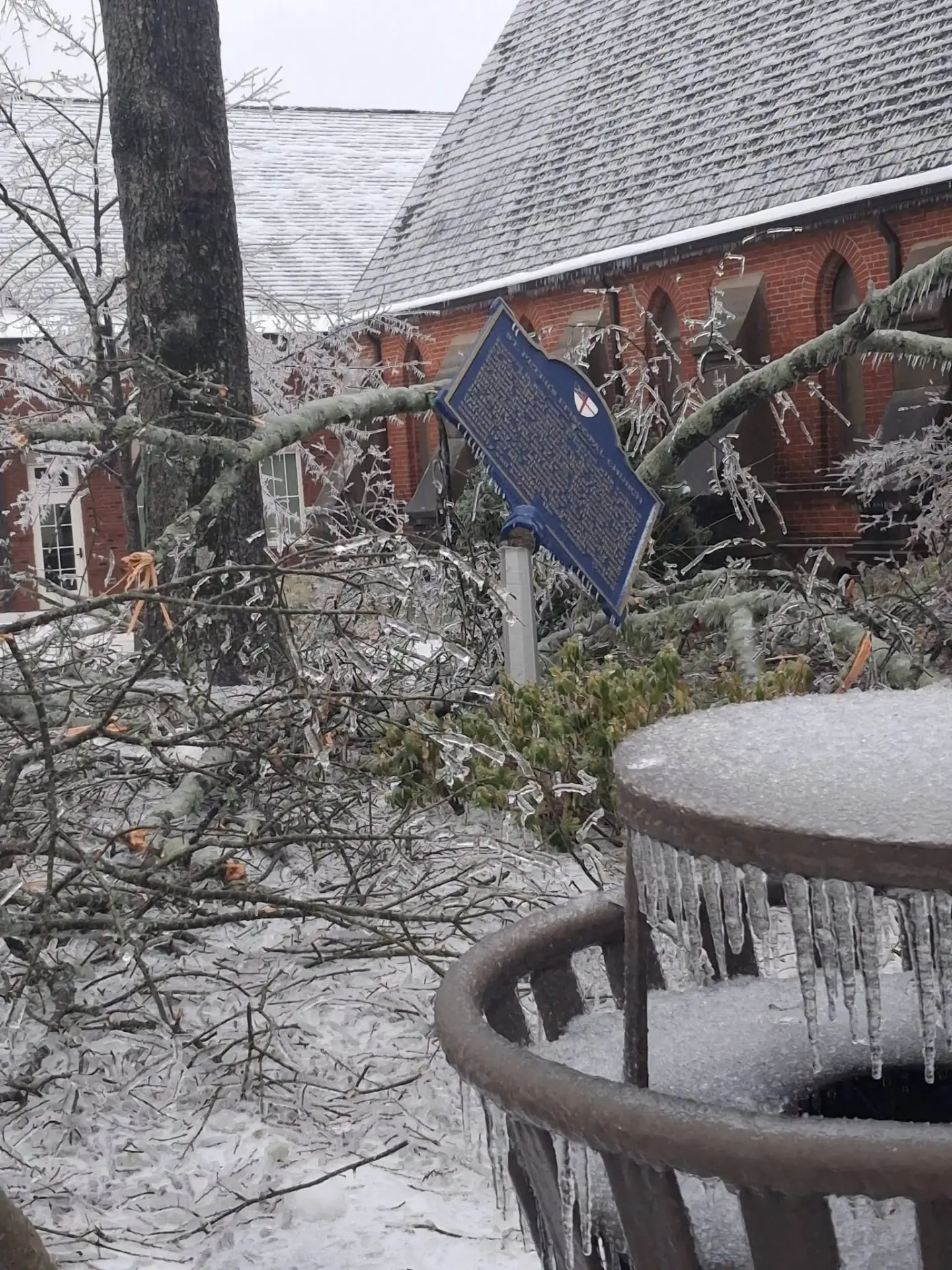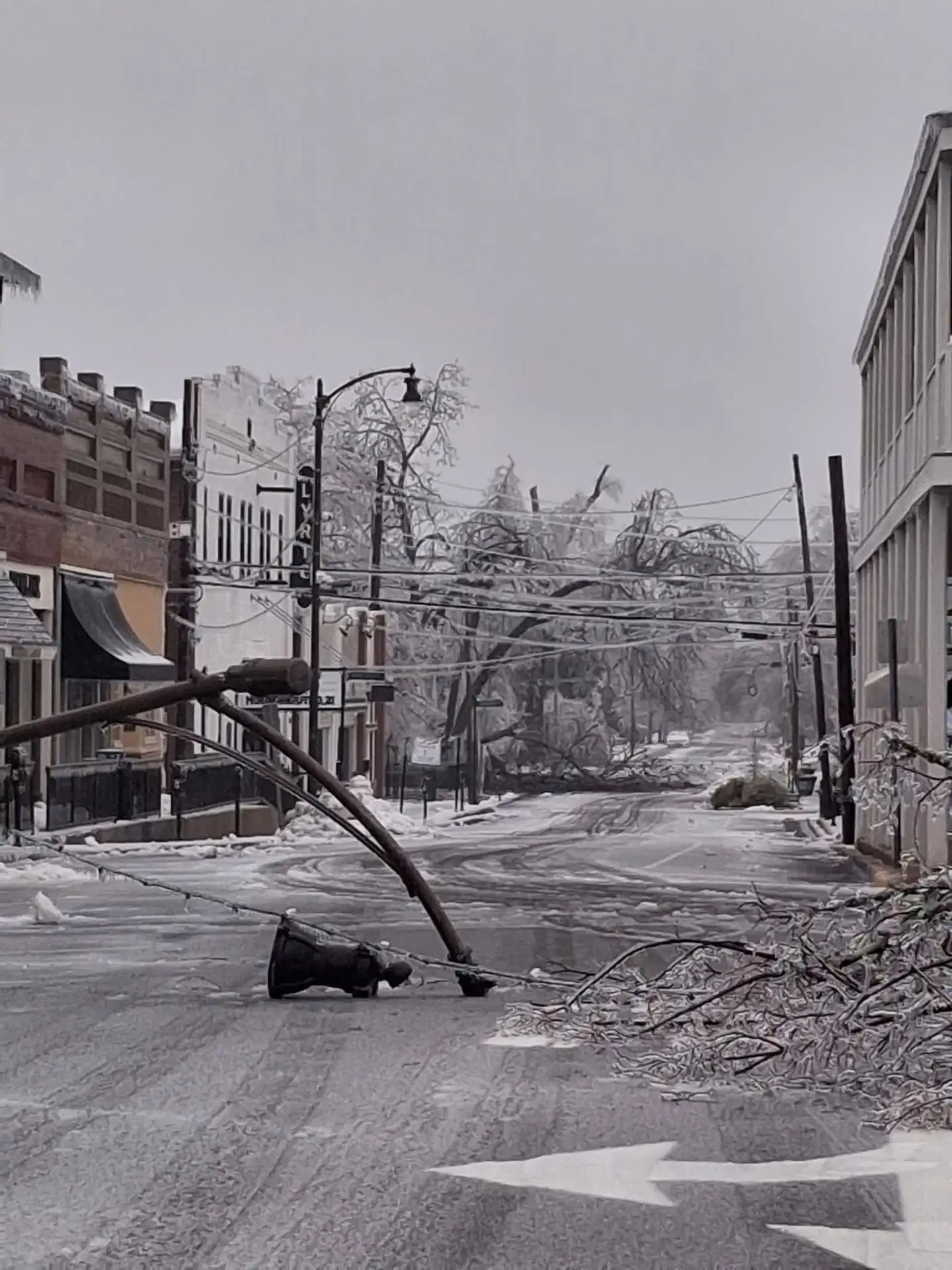 Ледяной дождь поломал тысячи деревьев и отключил электричество во всём городе.