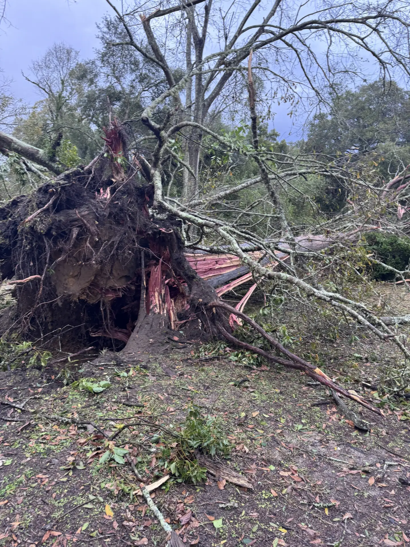 Везде валяются ветки и поваленные деревья.
