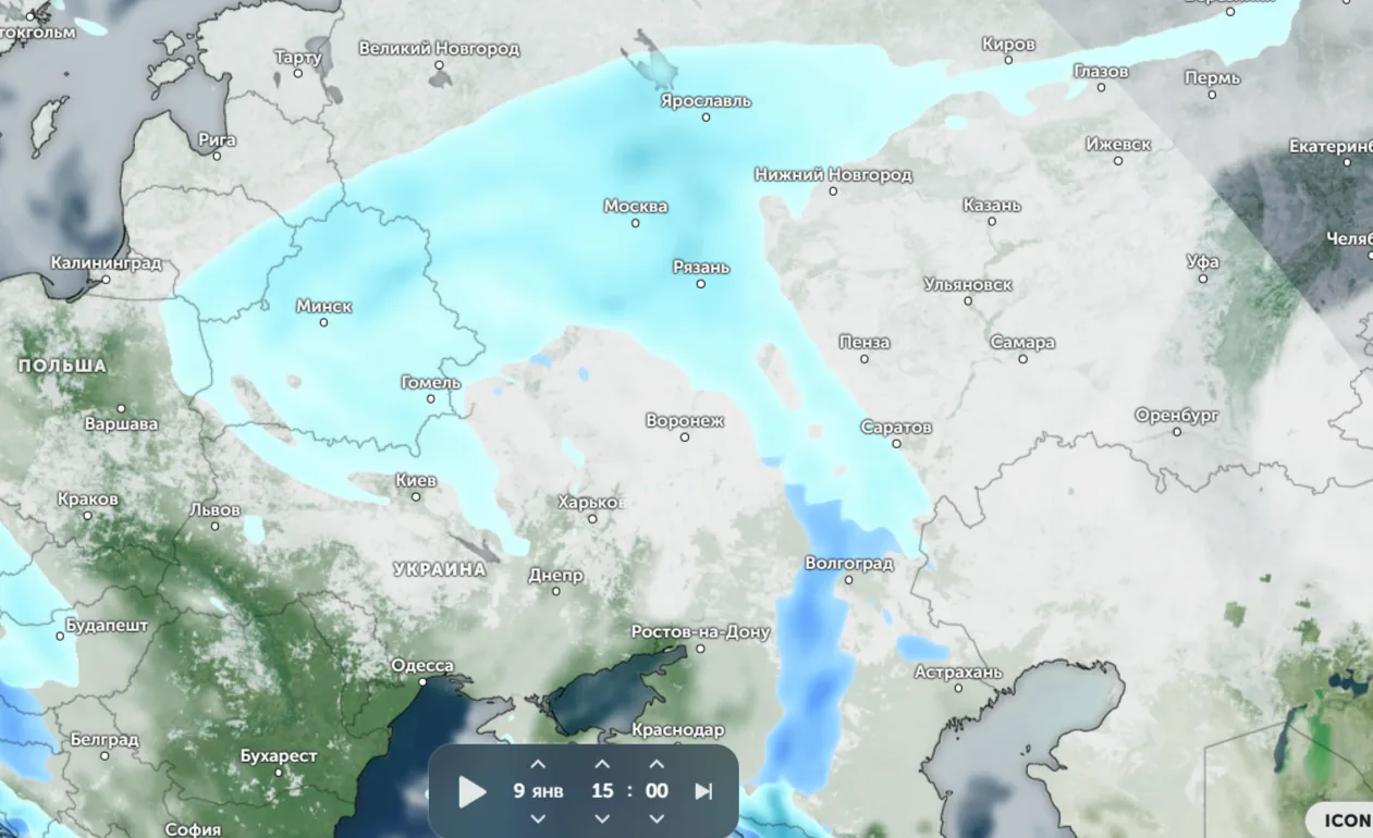 📍 На Европейской части России проходят снегопады и ледяные дожди. В январе-2026 в Москве выпало 132% от нормы за месяц — 7 см осадков. Местами за 1 сутки выпала ¼ нормы.