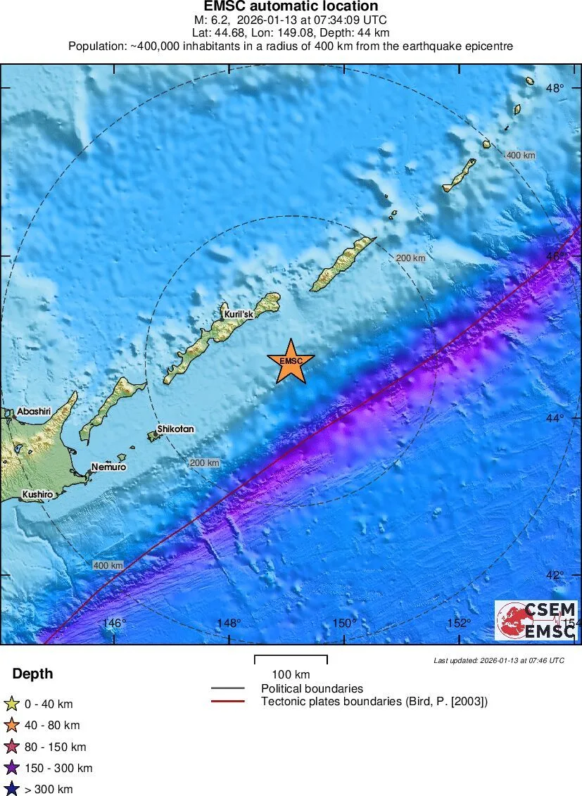 📍 Только что: сильное землетрясение — магнитуда 6,2 — у юга Курильских островов.