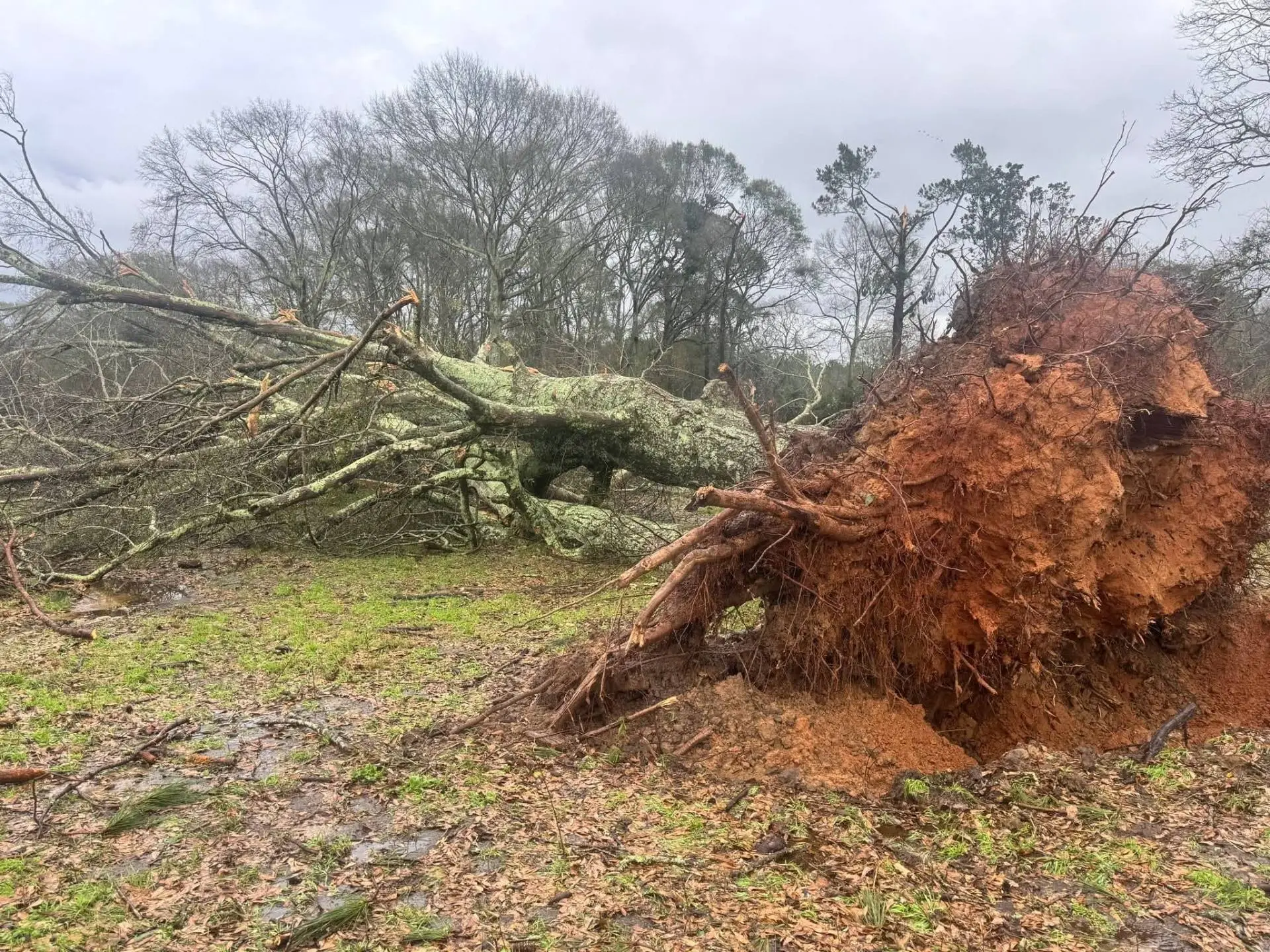 📍 США. Торнадо прошёл в Миссисипи близ Тайлертауна. Категория EF — 1 из 5 возможных со скоростью ветра 138–177 км/ч. Ширина воронки достигала 114 метров. Несколько домов и деревьев получили ущерб.