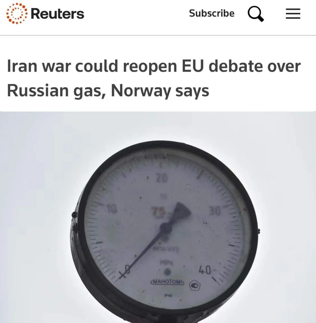 «Война с Ираном может вновь разжечь в ЕС дискуссию о российском газе, заявил министр Норвегии»: Обнаружившие, что остались без газа, европейцы уже не так сурово смотрят на Россию.