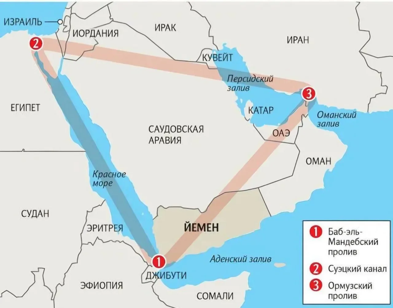 Тогда миллионы баррелей нефти и миллиарды кубометров газа будут фактически заперты на Аравийском полуострове без возможности попасть ни в Европу, ни в Азию.