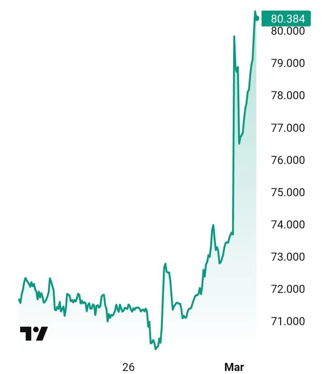Нефть Brent открылась ростом на 13% до $82 на первых торгах после начала ударов по Ирану — это максимум с лета 2024 года. Затем цена скорректировалась до $79