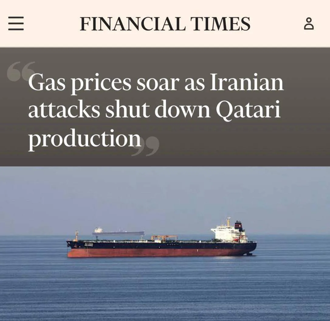 ❗️В Катаре прекращено производство СПГ газа из-за удара по производственным объектам в городах Рас-Лафан и Масисад. Цена газа на бирже в Европе превысила $500